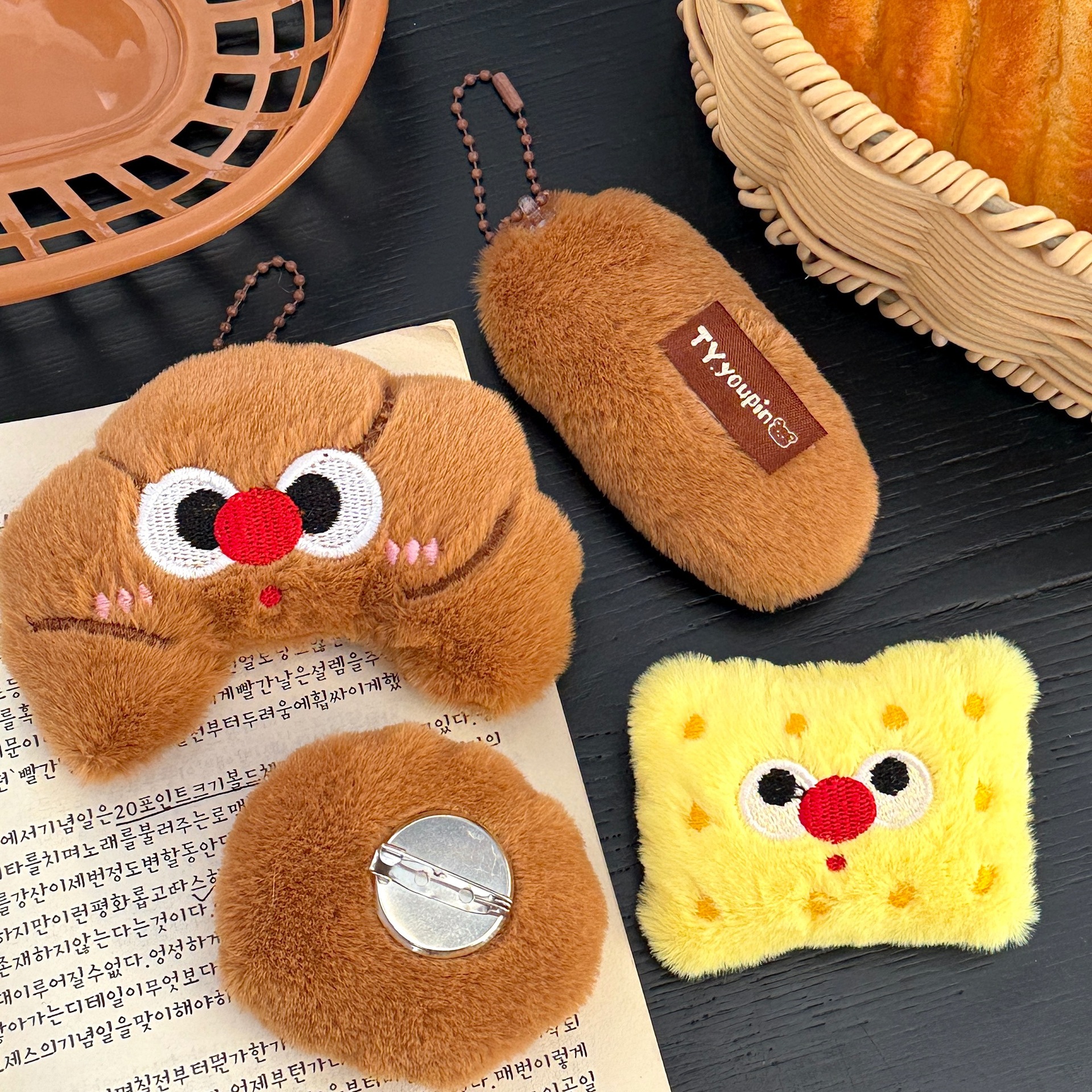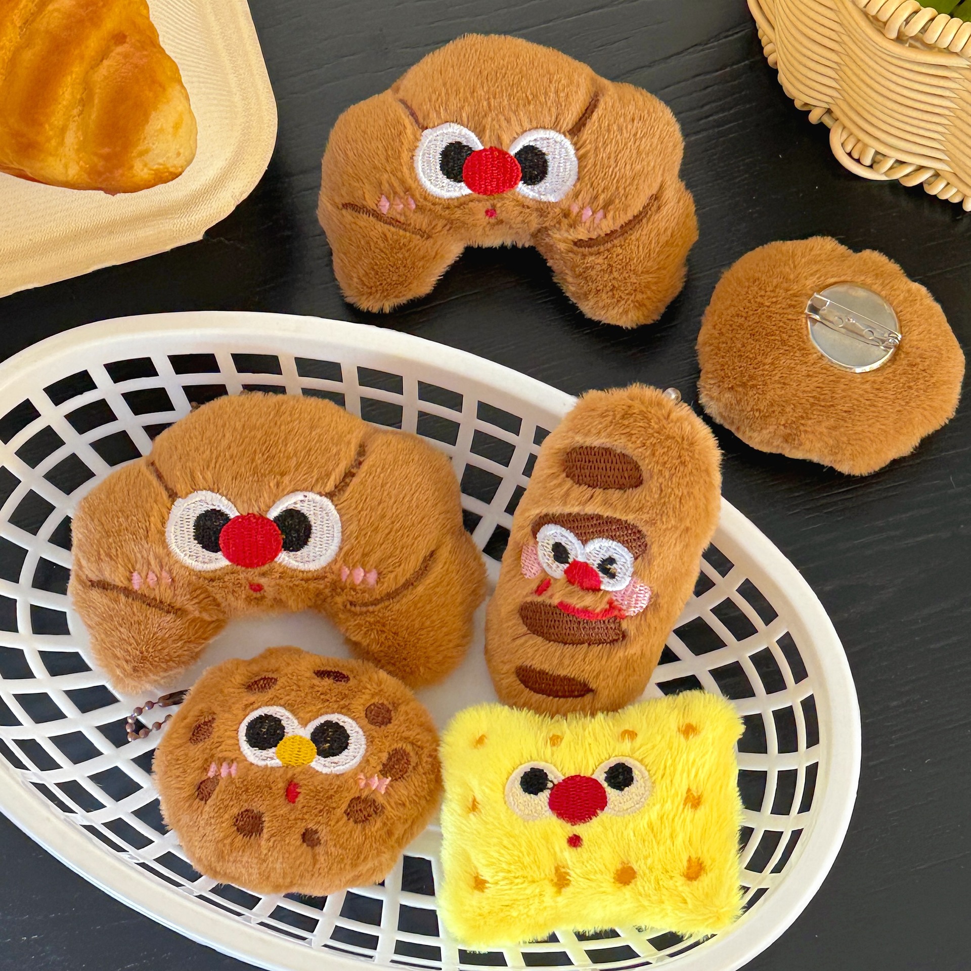 Bolso de cuerno de dibujos animados japoneses, palo francés, muñeca de galleta, colgante, broche, accesorios de muñeca de todo fósforo, bolso escolar, llavero, colgante
