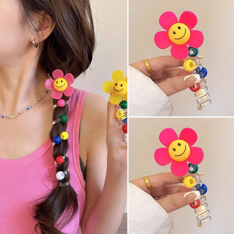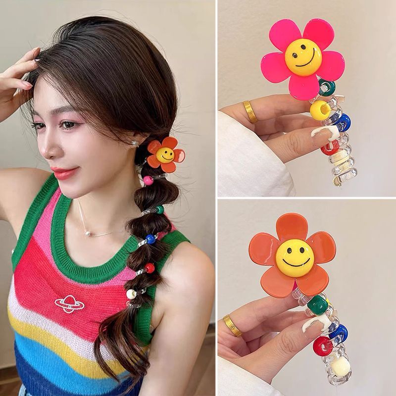 Dulces burbujas de flores de sol trenzadas burbujas de cabello artefacto de cabello de cola de caballo 2024 nueva línea telefónica de alta calidad anillo de cabello para mujeres