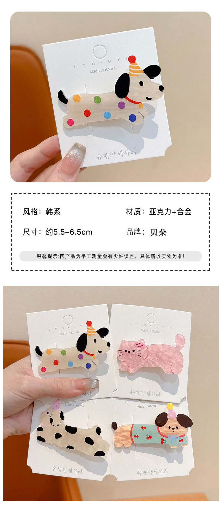 | Color | 1 # ondulado pin de pelo de perro, 2 # pin de pelo de gato rosa, 3 # pin de pelo de perro de cereza, 4 # pin de pelo de perro blanco y negro, 5 # pin de pelo de perro de pijama |