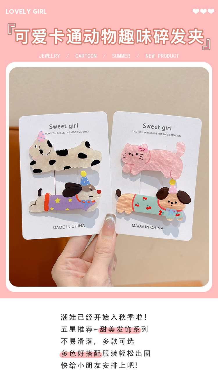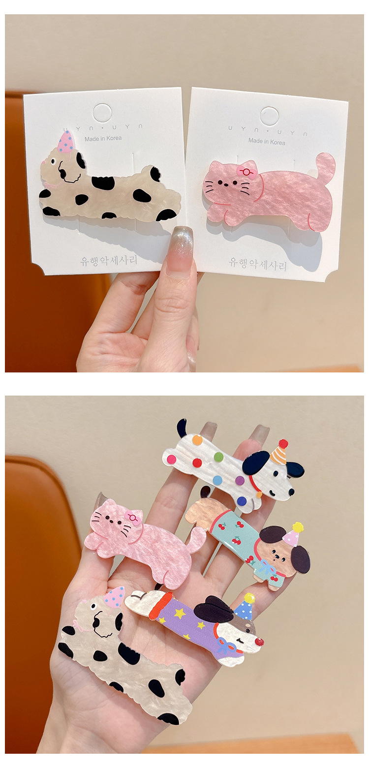Clipper de cabello de perro manchado fresco dulce lindo animal caricatura gato no daña el cabello lateral fijado cabello de mujer