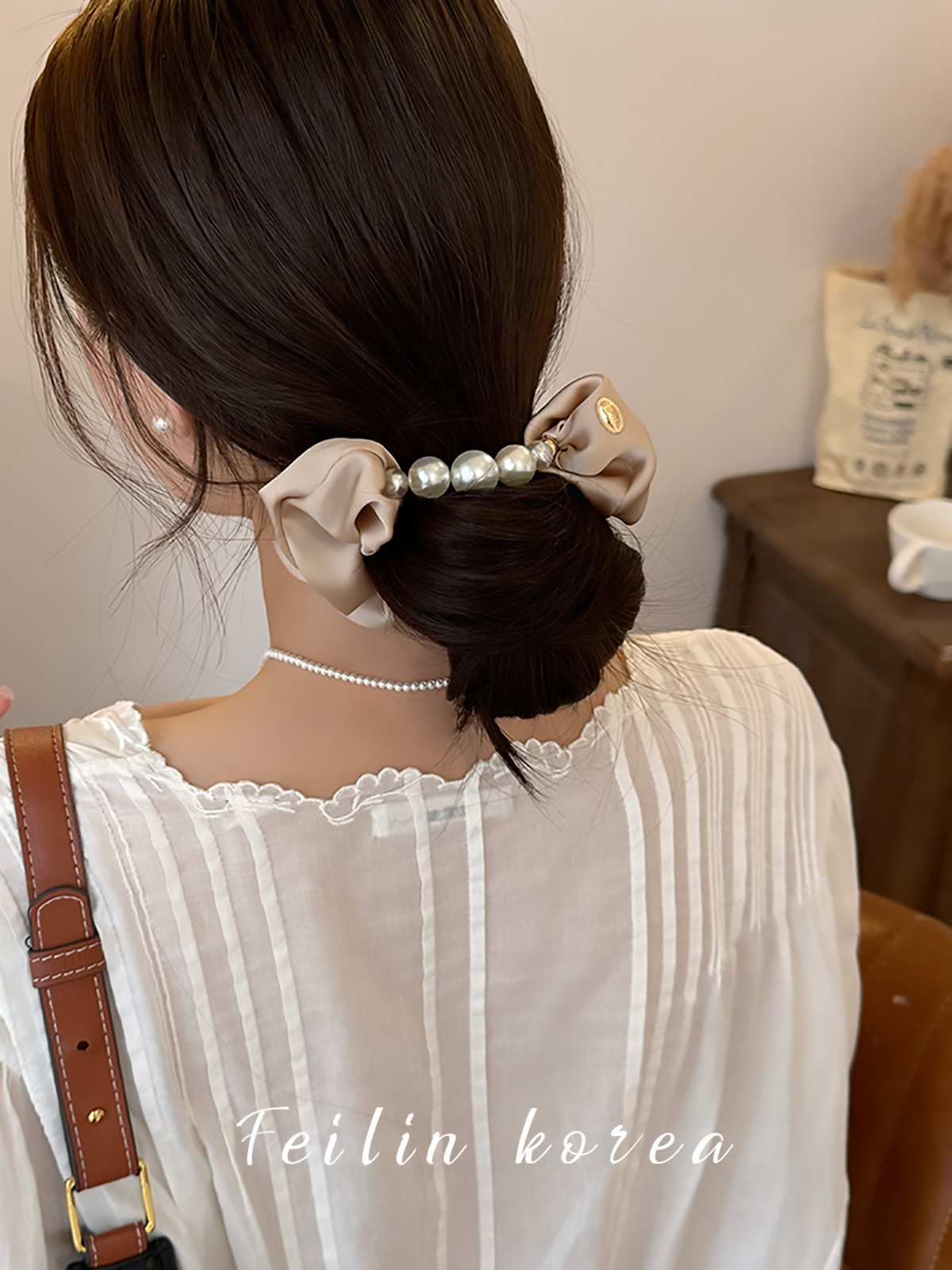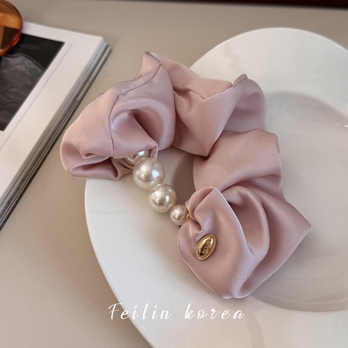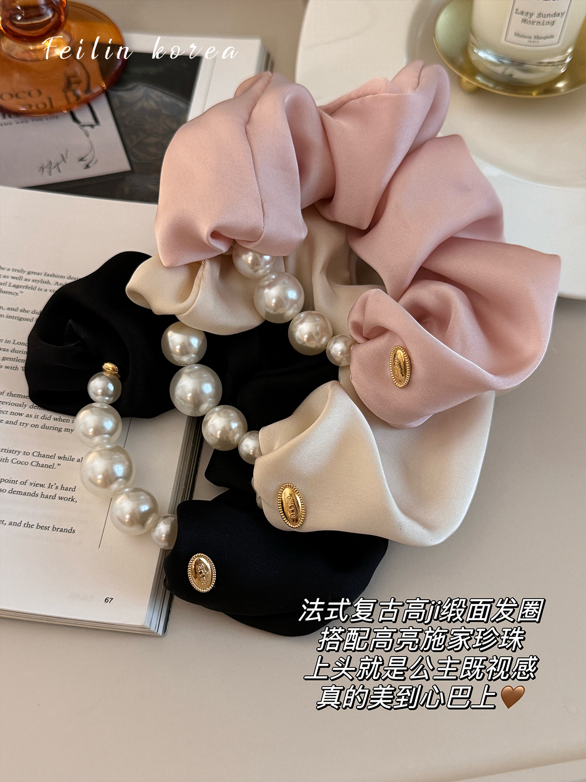 Cordón de cabeza de perla 2024 nuevo cabello de alta gama correa de cabello de mujer de alta calidad flores de cabello de satén intestino anillo de cabello adornamiento coreano