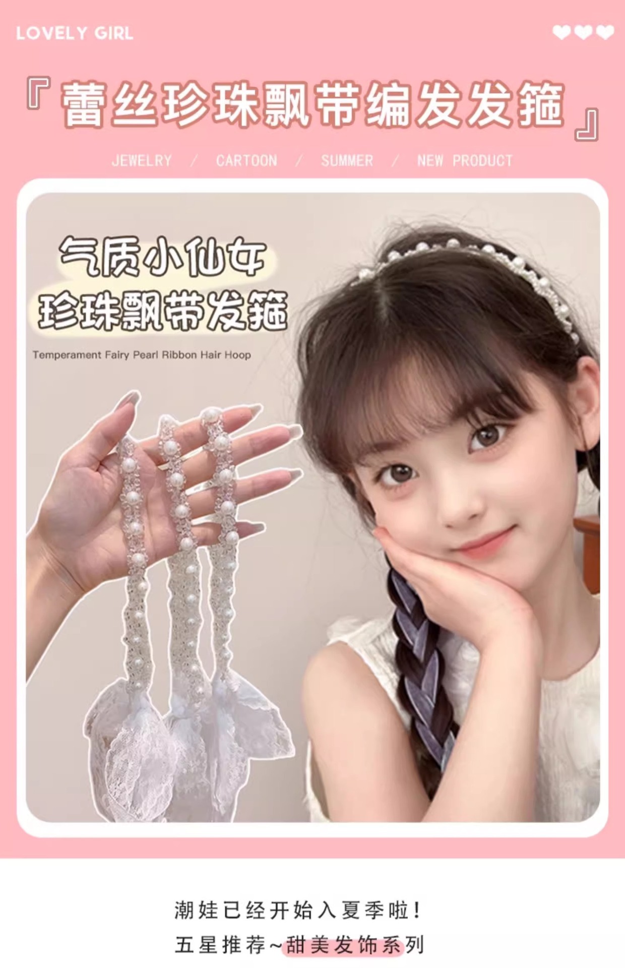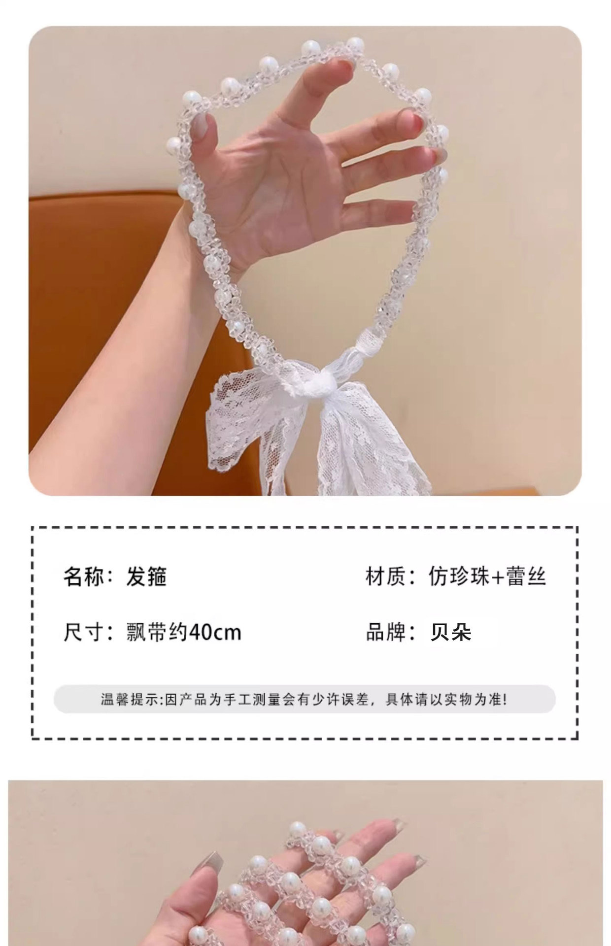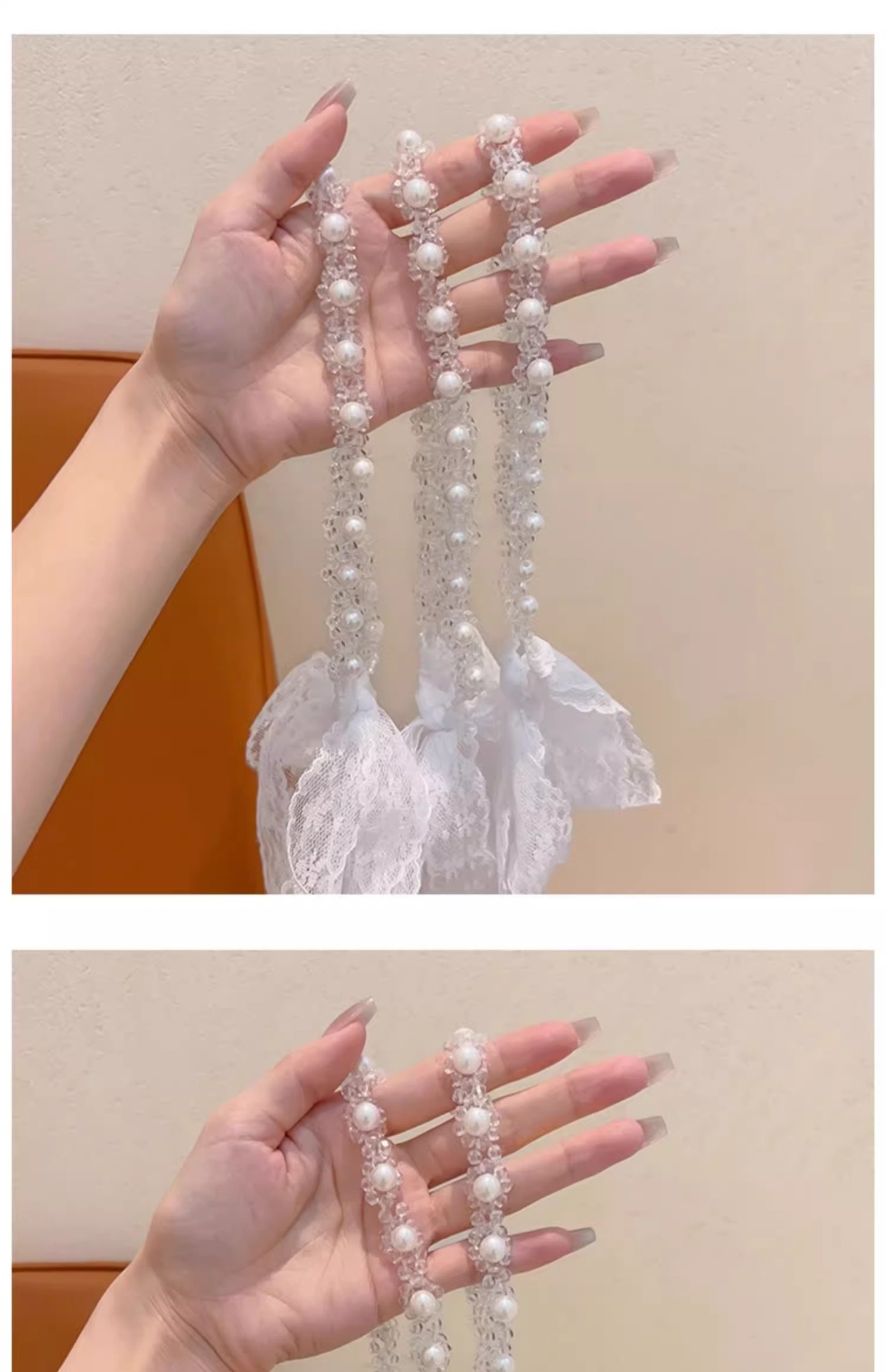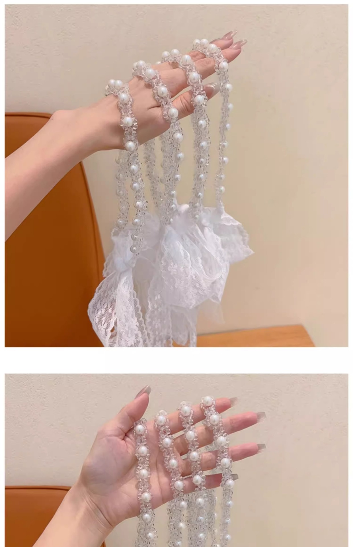 Super inmortal niños perlas de encaje flotante bandana de cabeza princesa dulce banda de cabello bandana de cabello tocado arco trenzado banda de cabello