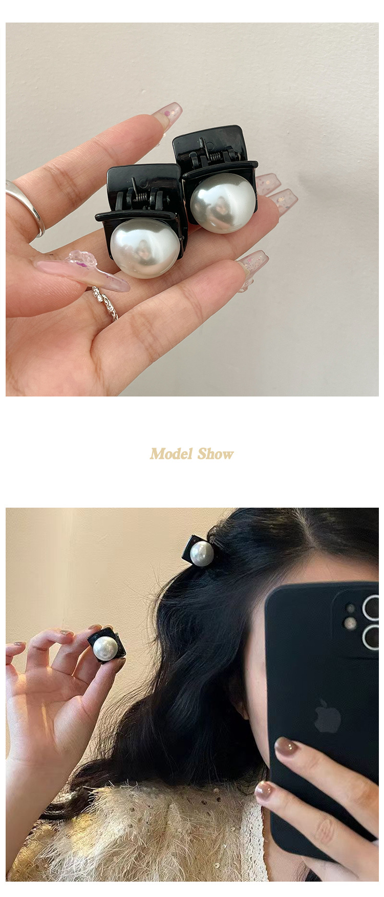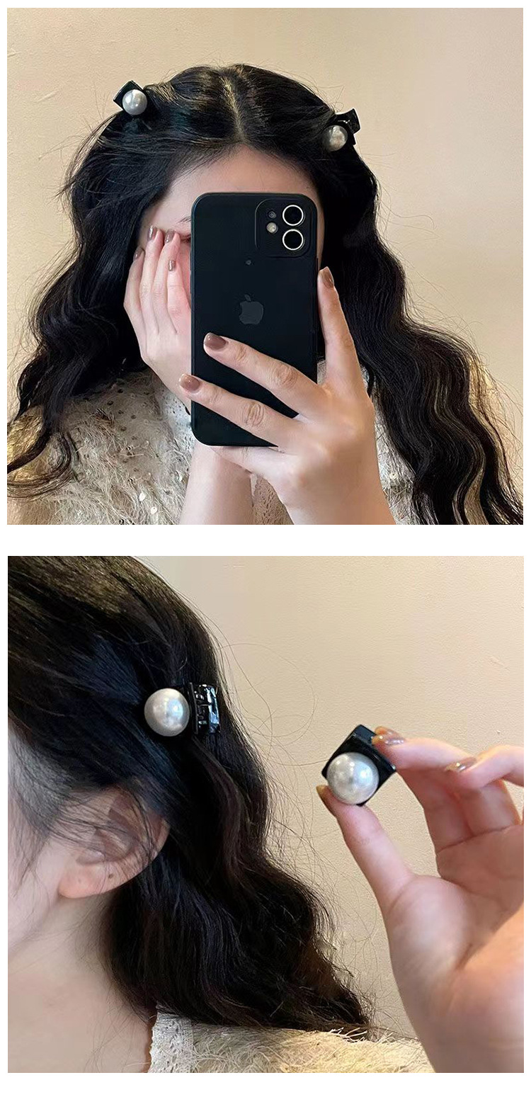 De alto grado de perla horquilla flequillos laterales femeninos cabeza de princesa pequeño clip negro horquilla Internet celebridad nuevo clip de tiburón
