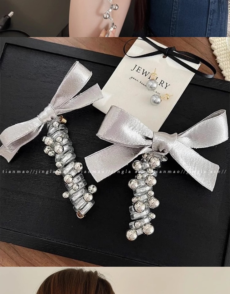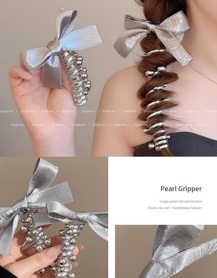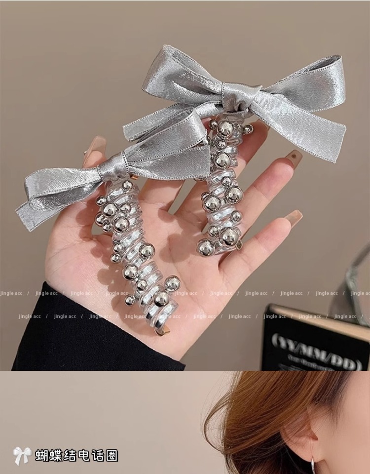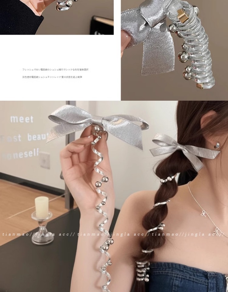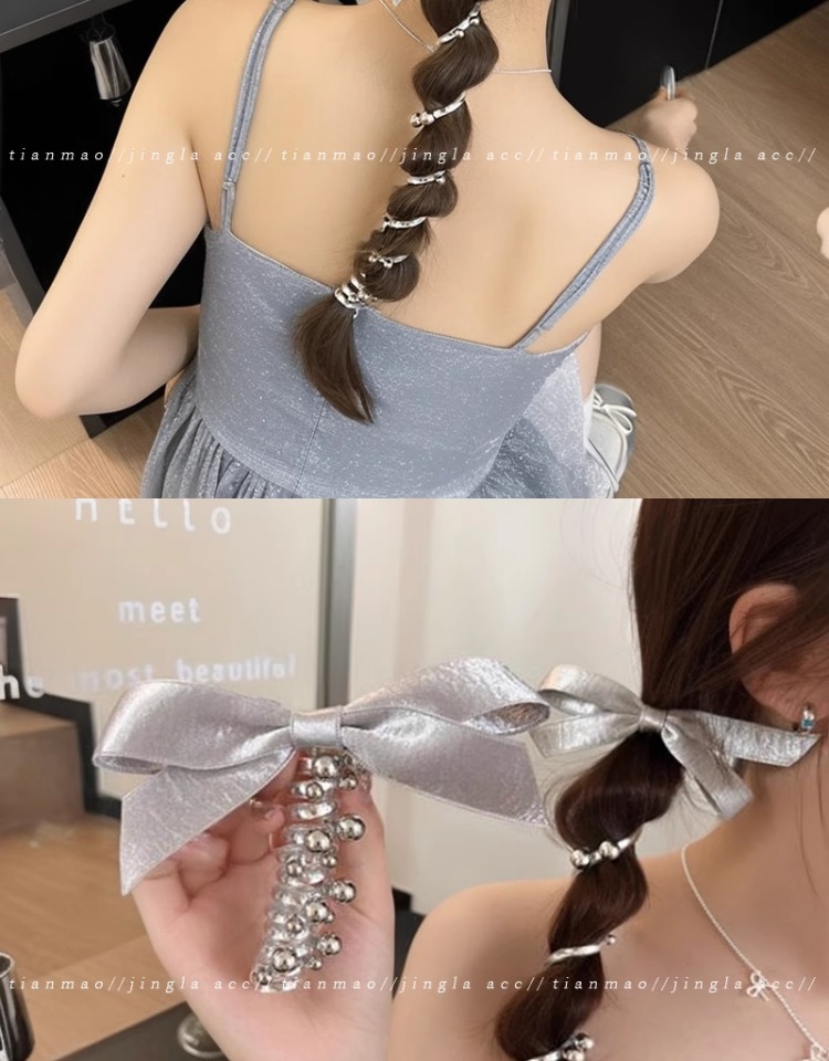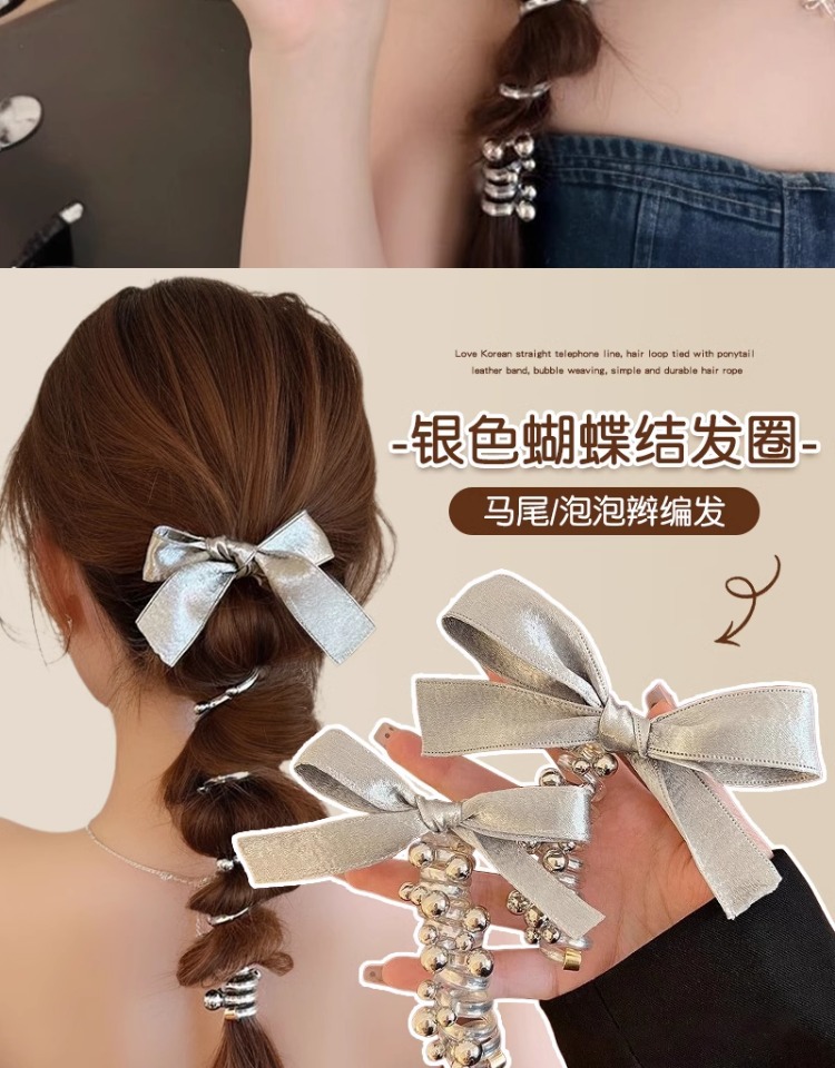 2025 nueva plata brillante cinza plateada cinta de tejido arco perlas línea telefónica anillo de cabello de mujer burbuja trenza cabello de cabello