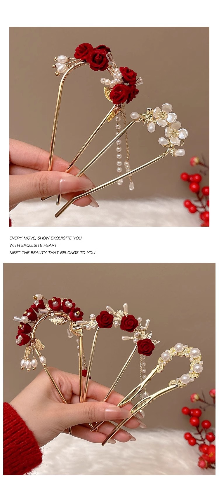 | Color | Cabello en forma de u de rosas, cabello en forma de u de flores, cabello en forma de u de flores perladas, cabello en forma de u de flores perladas, cabello en forma de u de enredaderas perladas huecas, horquilla en forma de u de enredaderas perladas, clip de pico de pato rosa roja, horquilla en forma de u de rosas, horquilla en forma de borla de rosas |
