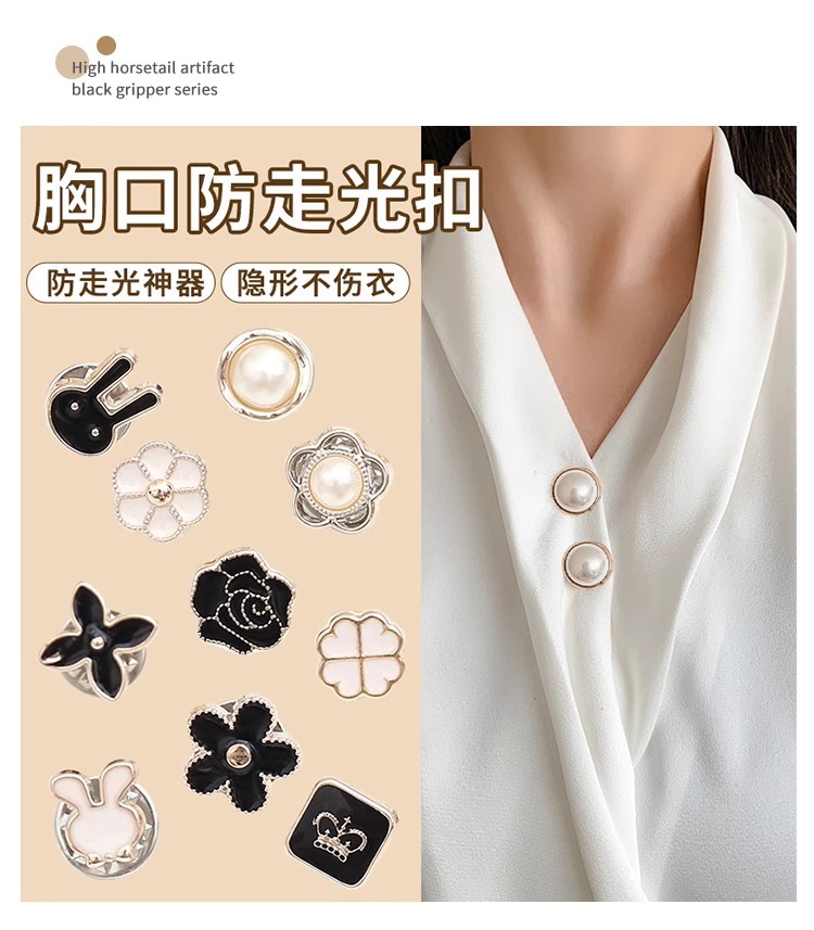 Collar anti-exposición Botón de pecho hebilla oculta artefacto sin costuras broche de perlas invisibles pin femenino pin fijo ropa