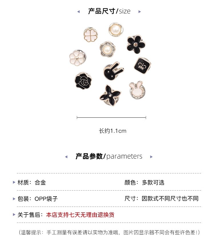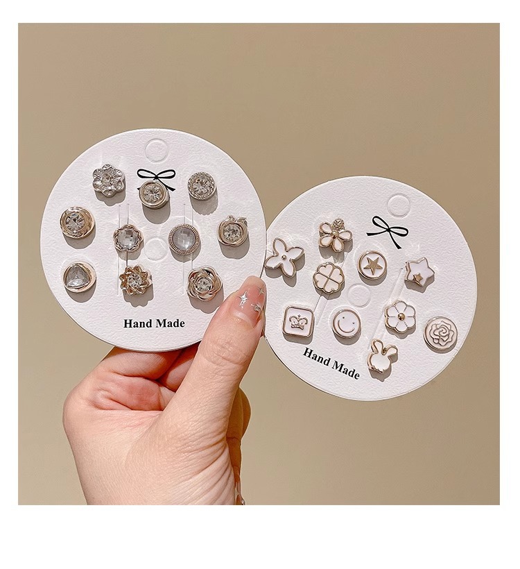 | Colores | Flores de cinco pétalos (10),Flor de perla (10),Mezcla de diamantes de imitación (10 piezas),10 perlas mixtas,Smiley de estrella de cinco puntas (10),Mezcla blanca (10 piezas),Mezcla negra (10 piezas),Conejo negro (10 piezas),Perla (10 piezas),Blanco (valor 20),Juego de 10 piezas de diamantes de imitación,Juego de 8 piezas de diamante único,Flor de oro,Flor de plata,Juego de 4 piezas de oro,Juego de 4 piezas de plata,Juego de 3 piezas de copos de nieve,Juego de 4 piezas de ojo de gato perla [sin amarre magnético],Juego de 2 piezas negro [sin amarre magnético],Juego de 2 piezas de perlas [sin amarre magnético],Juego de 2 piezas de ópalo [sin amarre magnético] |