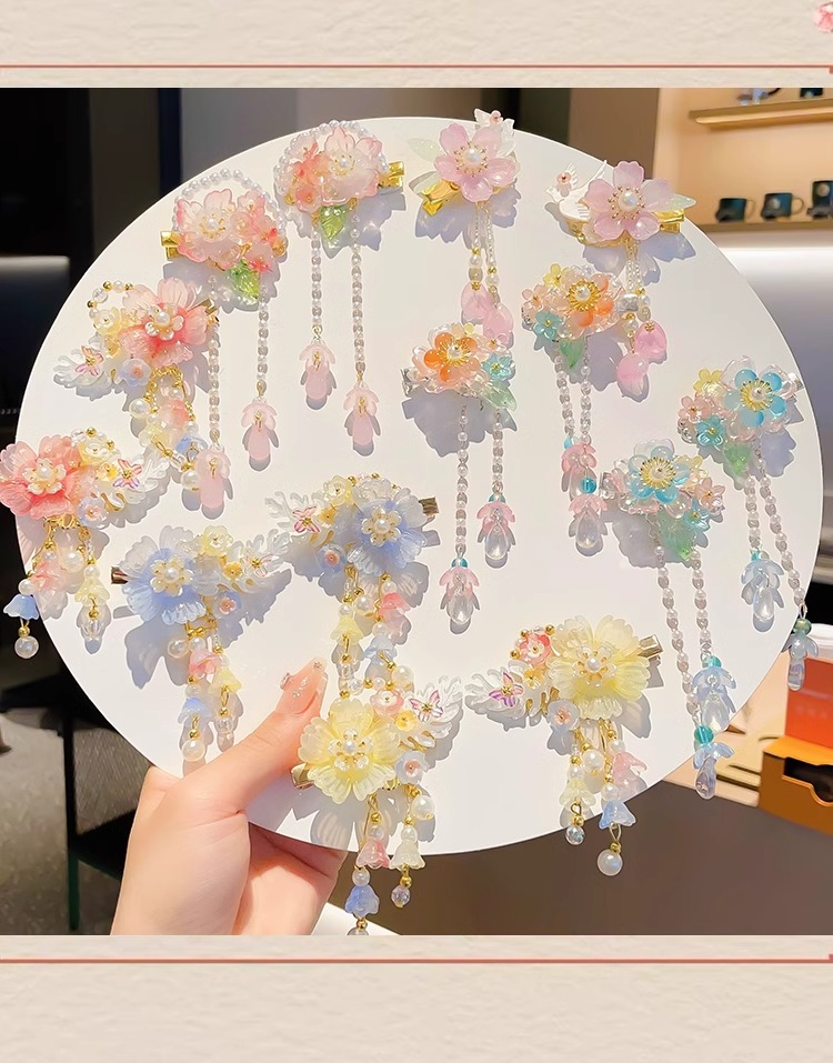 | Color | 7 ¿ huesos de pescado de flores azules, 8 ¿ huesos de pescado de flores amarillas, 9 ¿ huesos de pescado de flores rosas, 1 ¿ perlas de flores azules, 2 ¿ perlas de flores rosas, 3 ¿ gotas de agua vidriadas de flores azules claras, 4 ¿ gotas de agua vidriadas de flores rosas claras, 1 ¿ rosa de melocotón, 2 ¿ flores verdes, 3 ¿ flores de naranja, 6 ¿ flores de daiyu, 10 ¿ flores de naranja, 11 ¿ rosa, 17 ¿ azul púrpura?Flores, 19 ¿ doble jade, flores blancas y verdes, 23 ¿ perlas de flores rosas, 27 ¿ flores rosas grandes, 29 ¿ cintas azules y verdes de mariposas bordadas, 1 ¿ mariposas azules, 2 ¿ mariposas rosas, 3 ¿ mariposas moradas, 1 ¿ mariposas moradas, 2 ¿ naranjas, 4 ¿ rosas, 5 ¿ rojas, 6 ¿ azules, 7 ¿ raíces de loto, 8 ¿ verdes?Sí. |