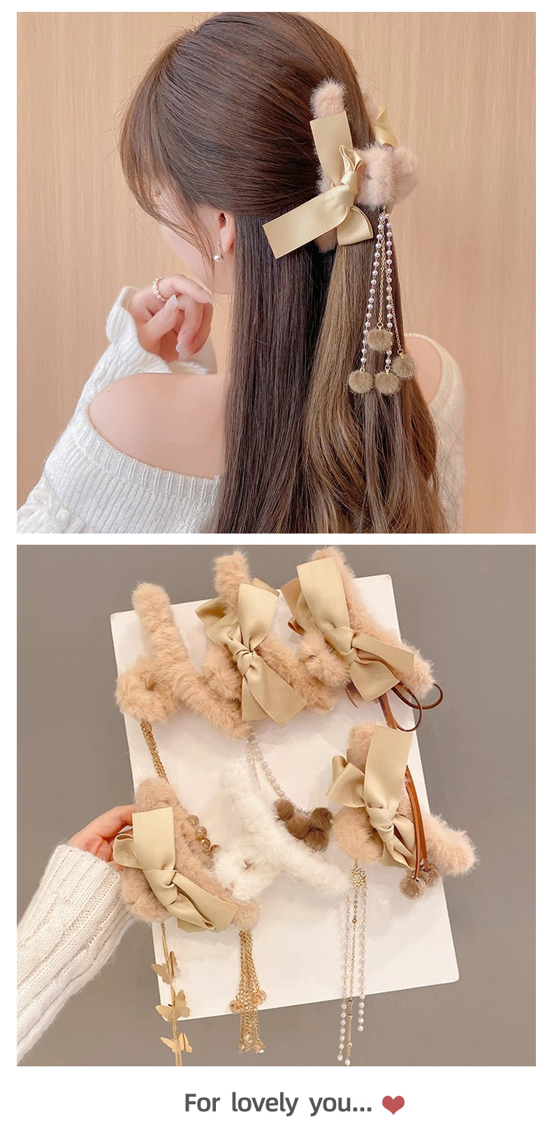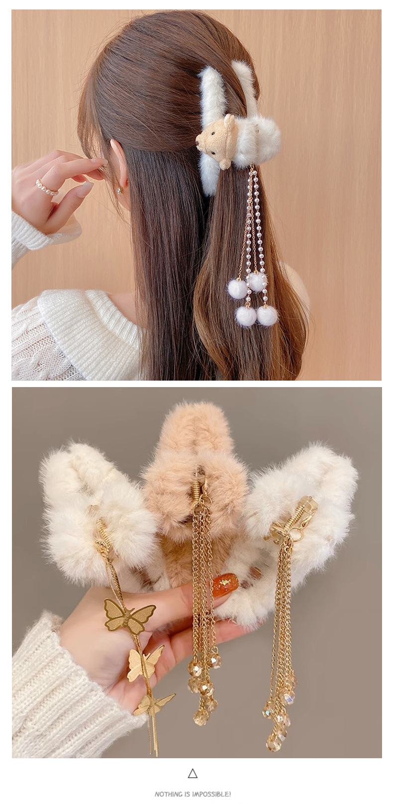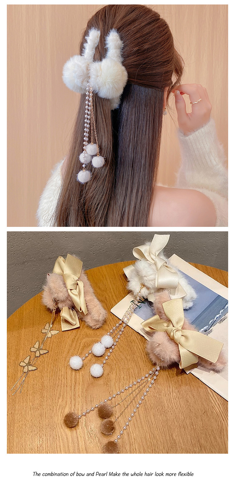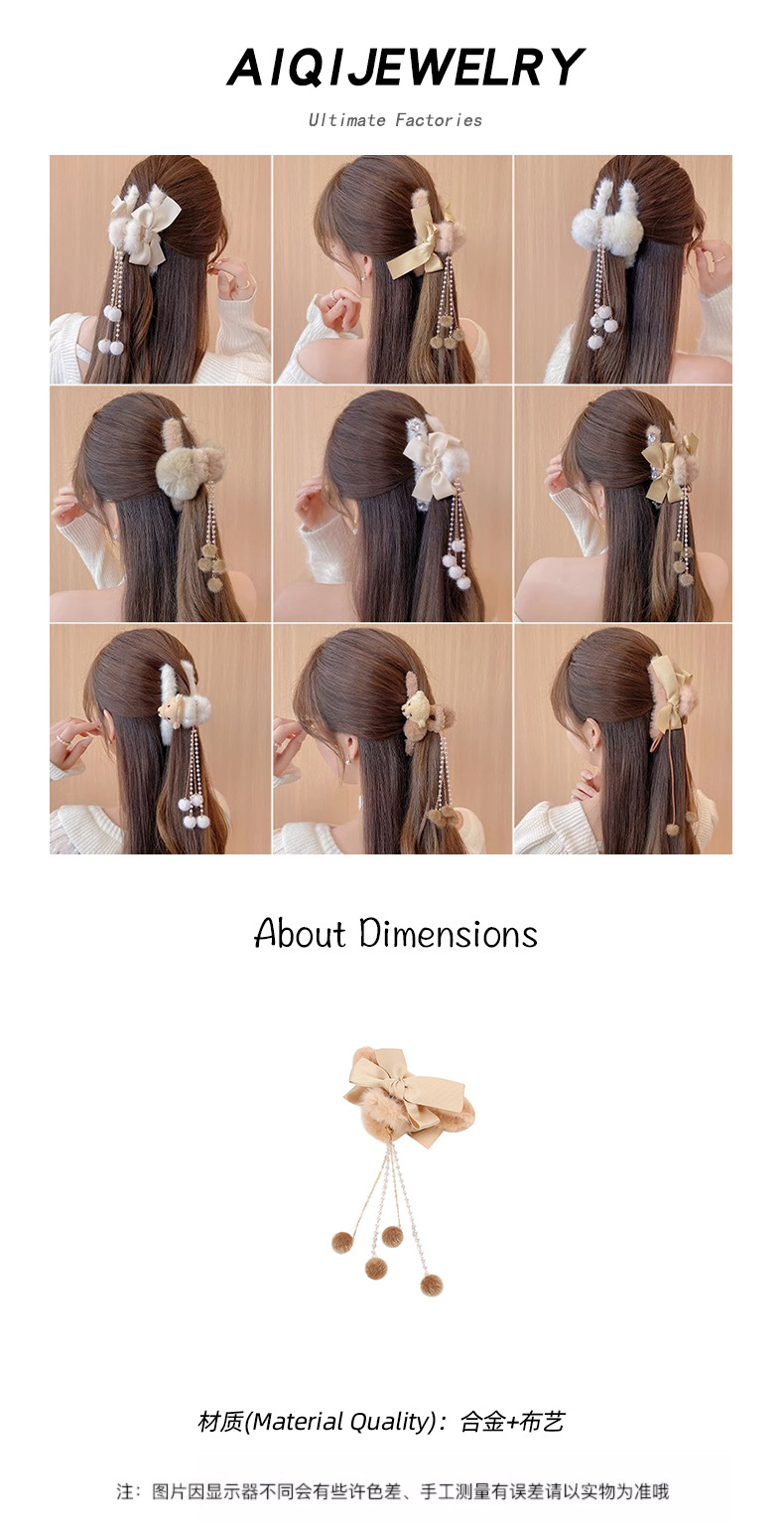 Corea del Sur felpa pelo clip Bola de Pelo borla colgante arco horquilla espalda Cabeza updo pelo agarre gran tiburón clip