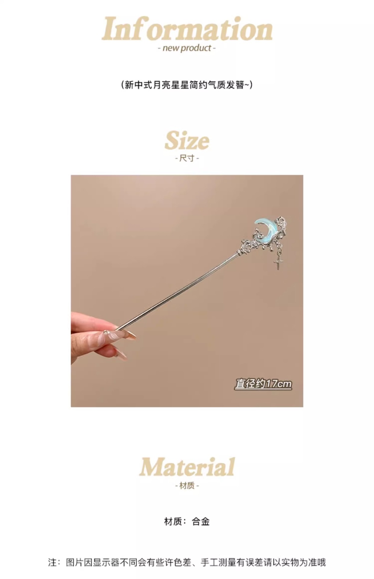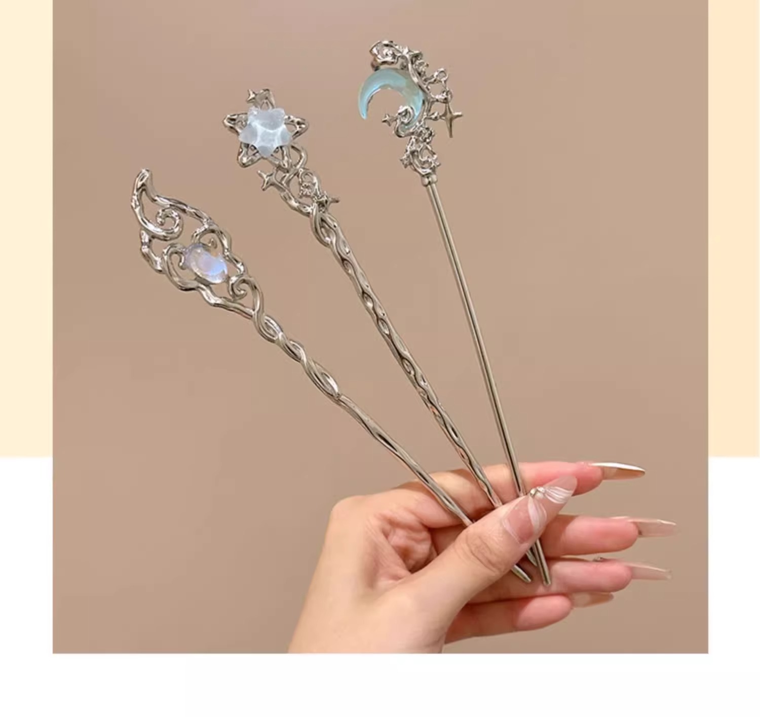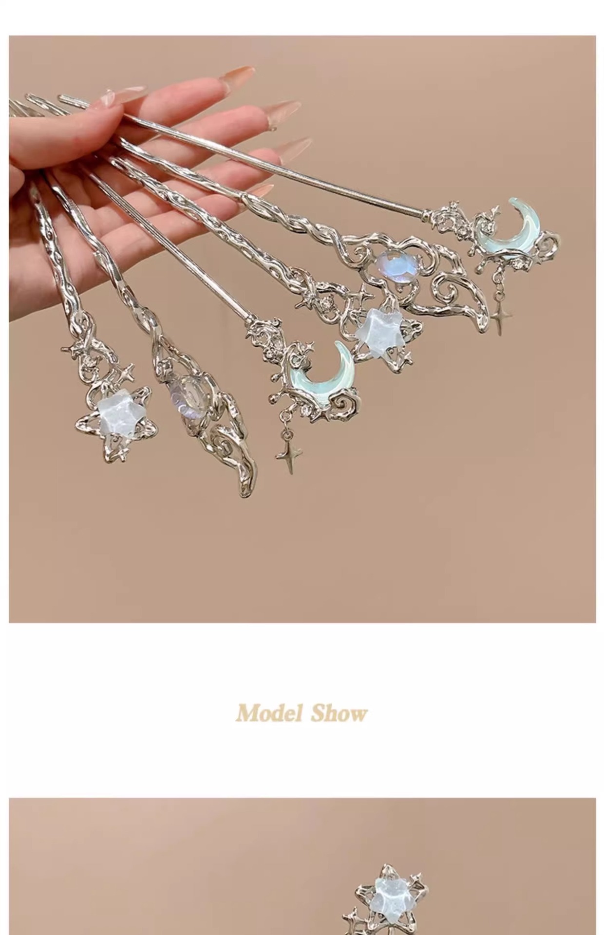| Color | 1# Dream Blue Liquid Moon Hairpin, 2 # Dream Blue Liquid Star Hairpin, 3 # Star Stone Hairpin. |