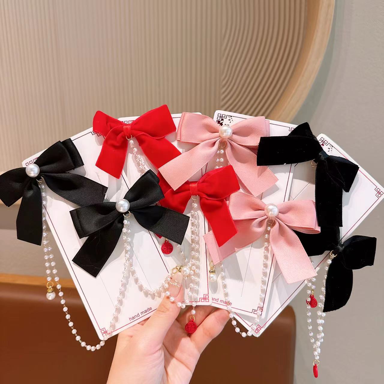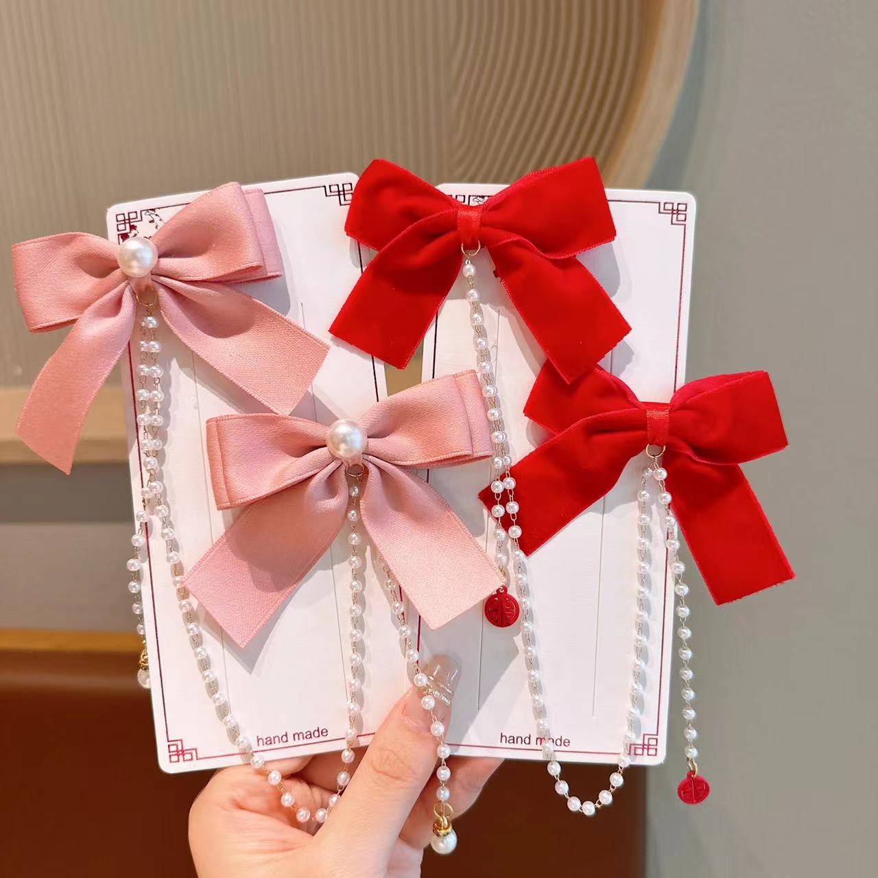 Rojo DE LOS NIÑOS Año Nuevo arco horquilla bebé princesa borla Año Nuevo Niña Accesorios para el cabello niña perla horquilla