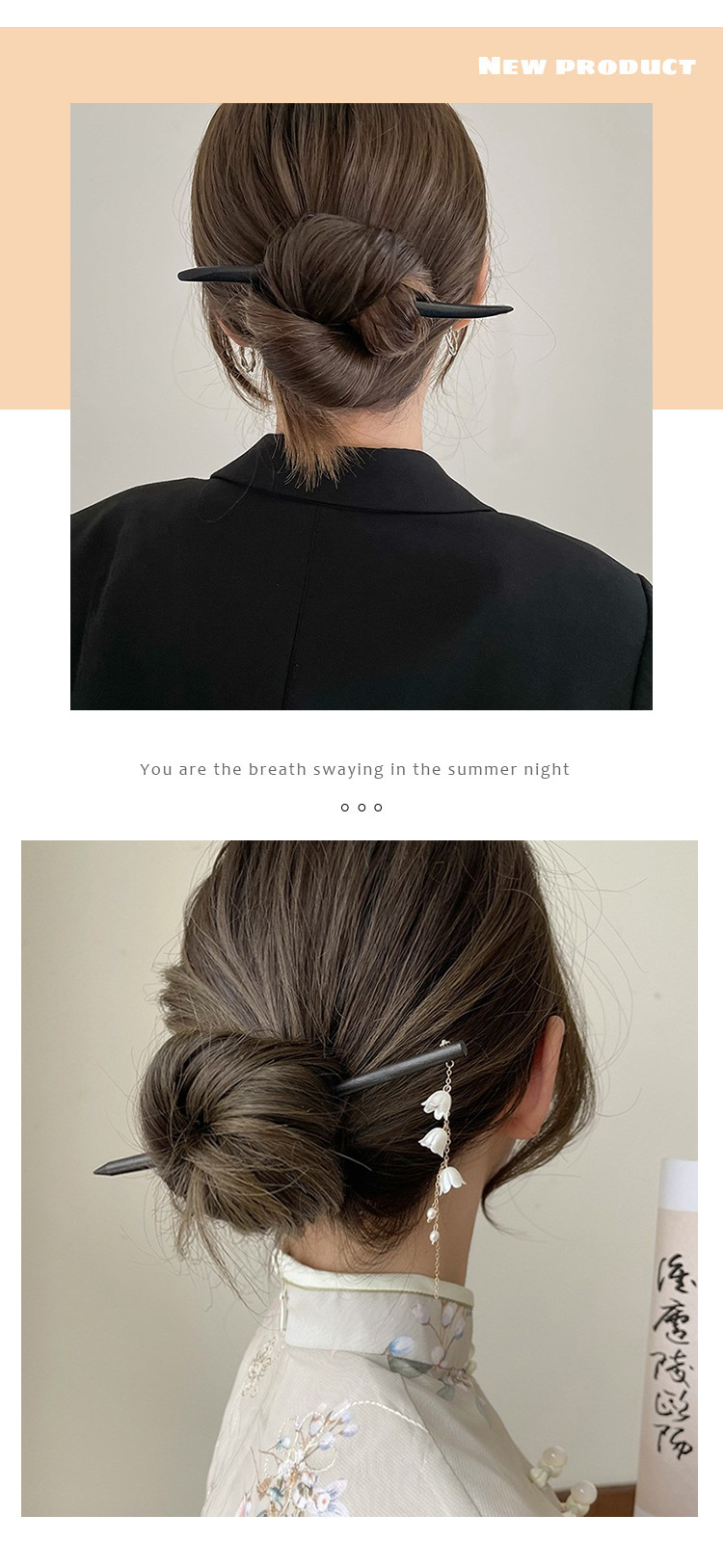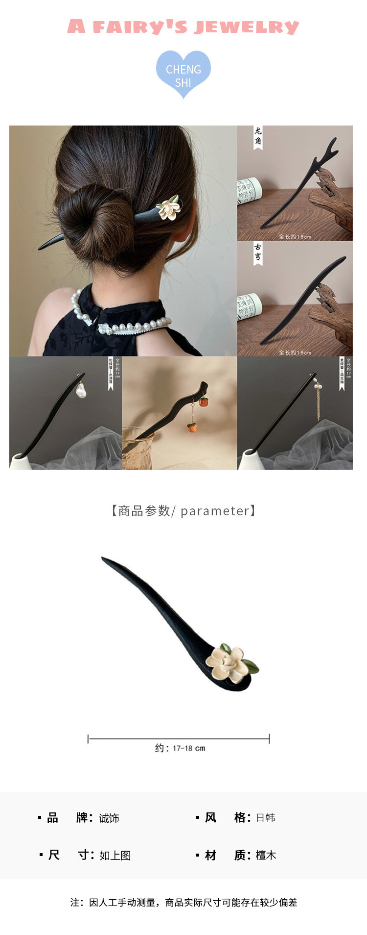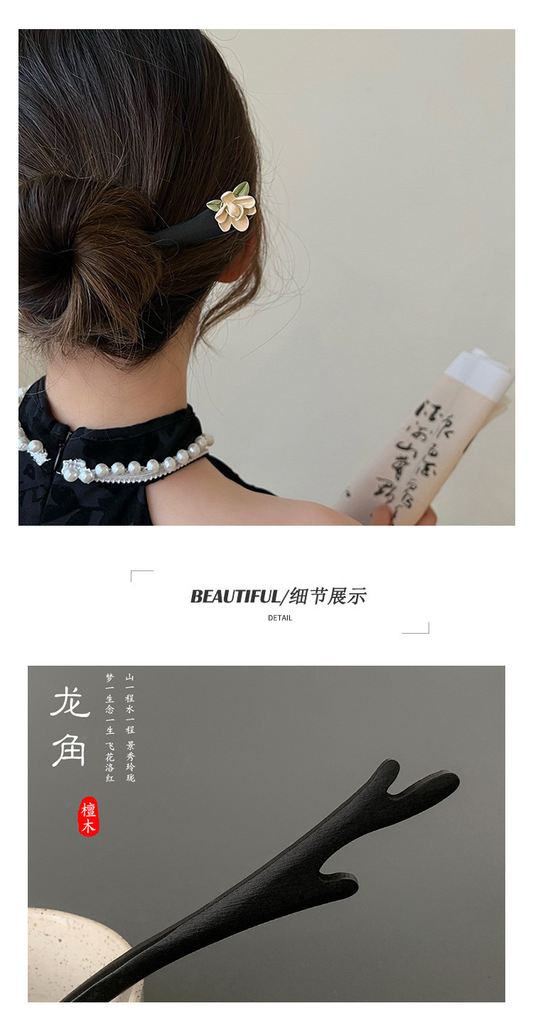 Cabello Zhang horquilla bandeja diaria de madera después de la presión alargando una palabra horquilla simple cheongsam moderno cantidad de cabello