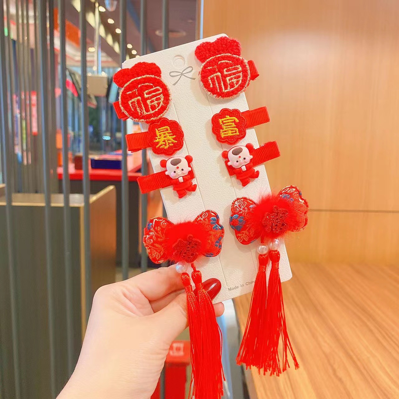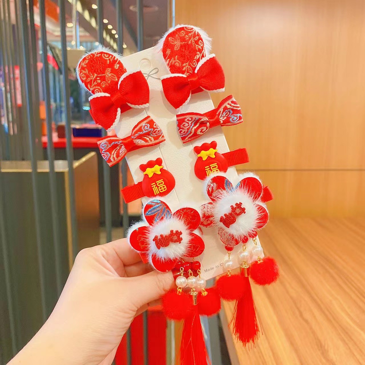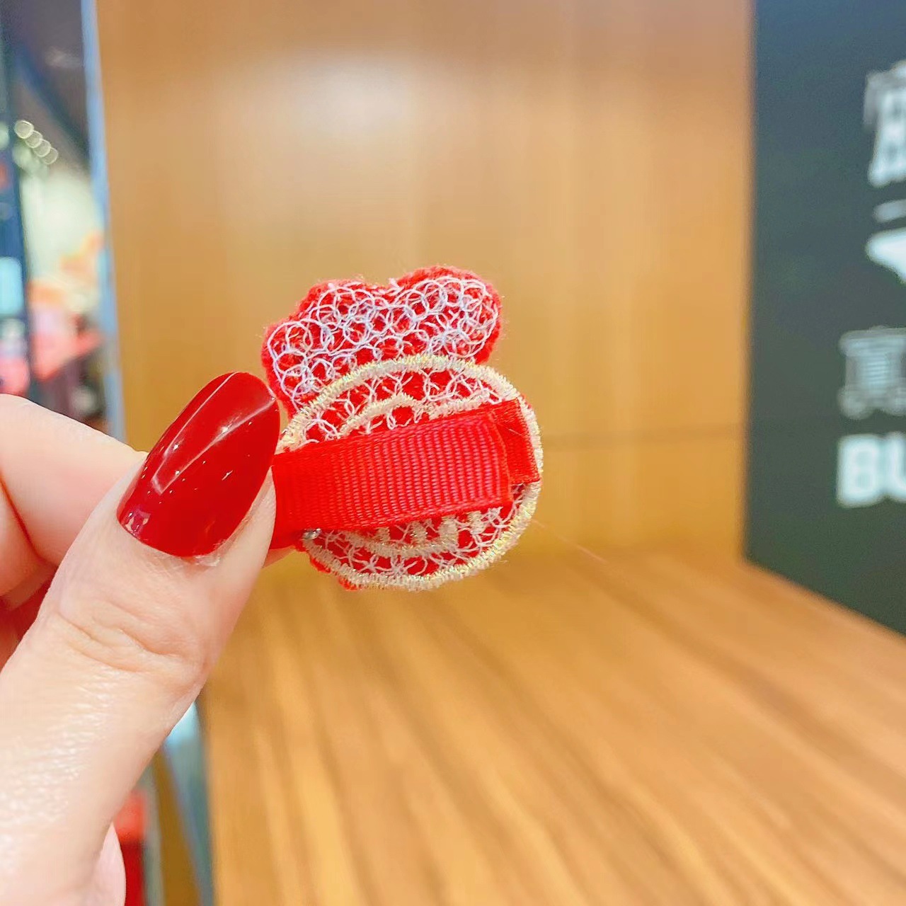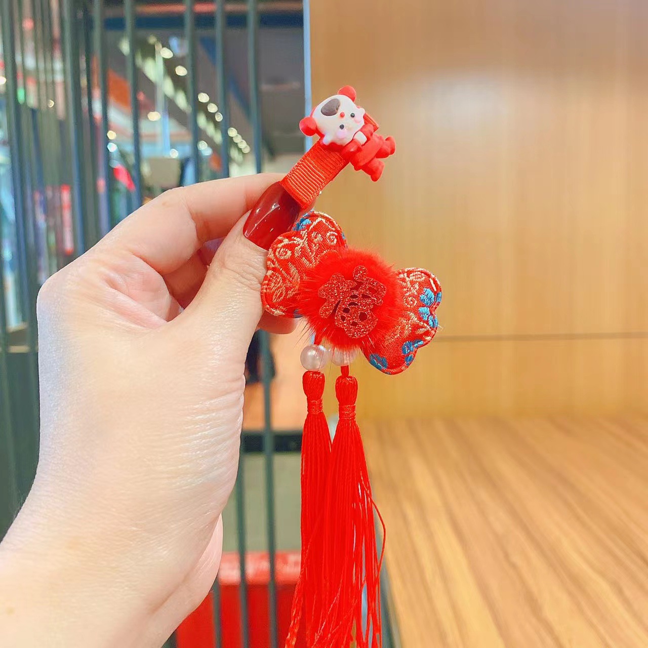 Estilo antiguo Año Nuevo Bola de pelo rojo para niños arco horquilla festivo linda chica Año Nuevo tocado horquilla accesorios para el cabello