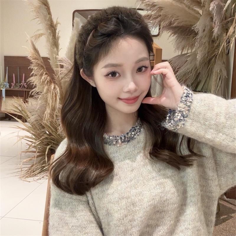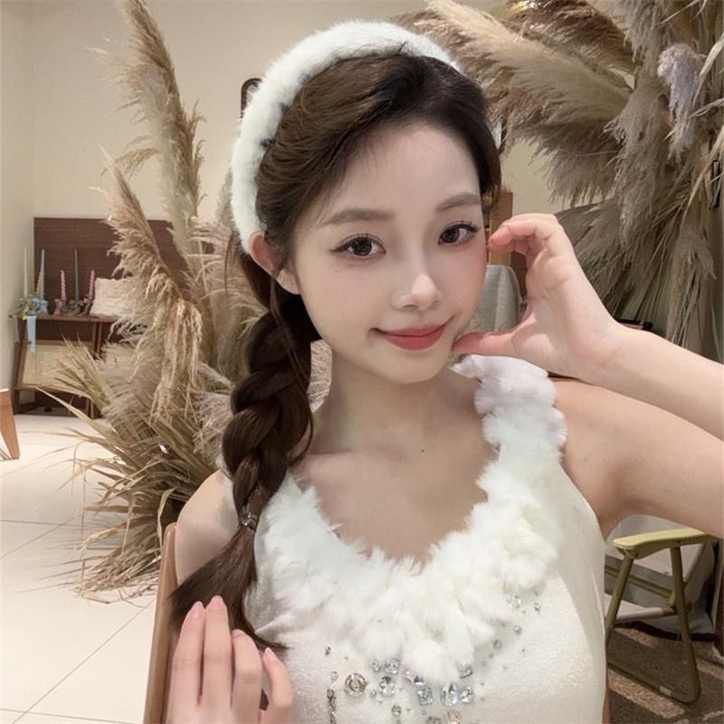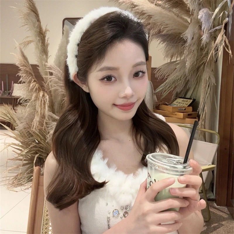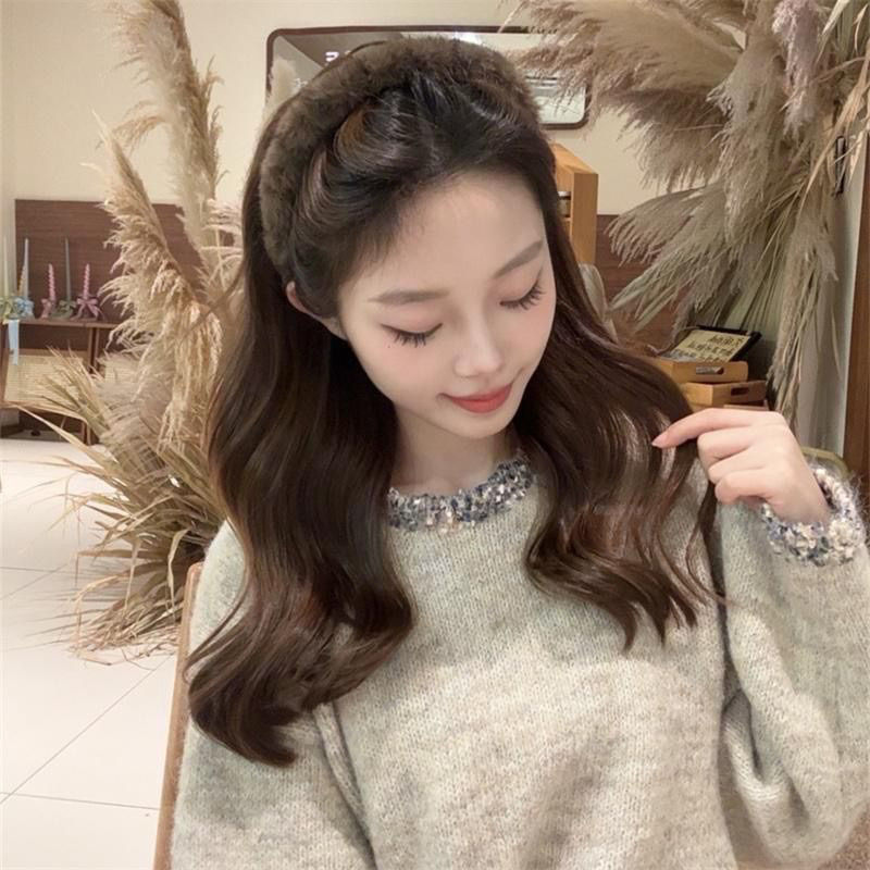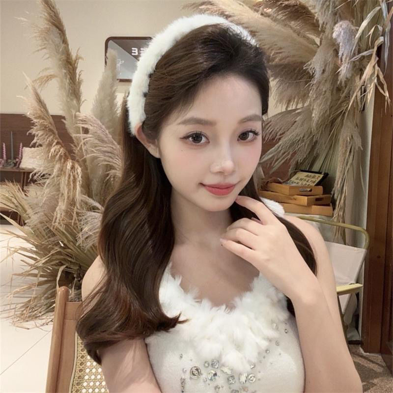 2024 nuevo otoño y invierno engrosado peludo ondulado peludo de textura suelta abrazadera de cabello sensación de alta moda extranjera cabeza