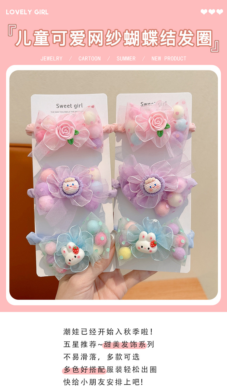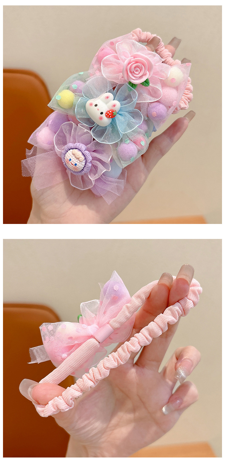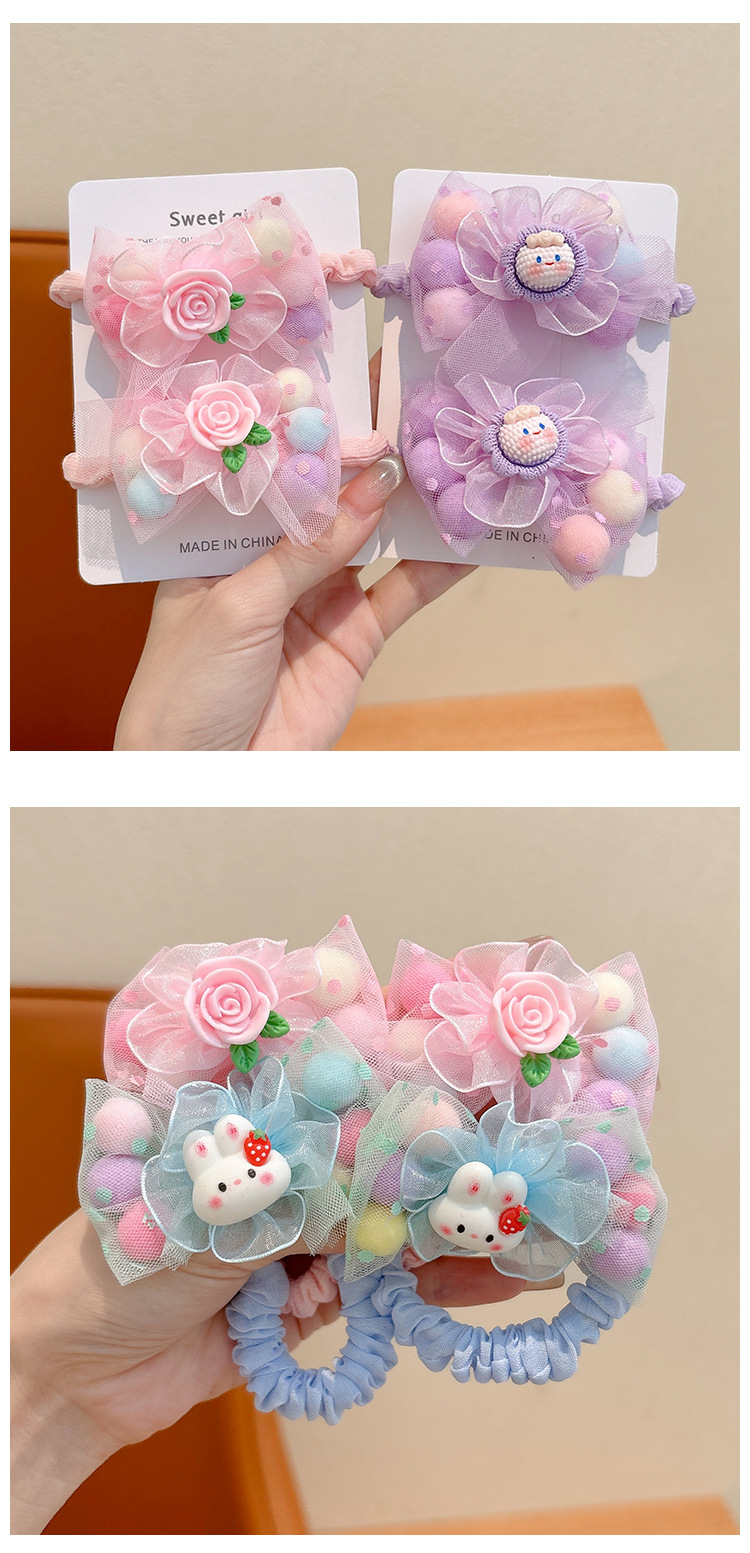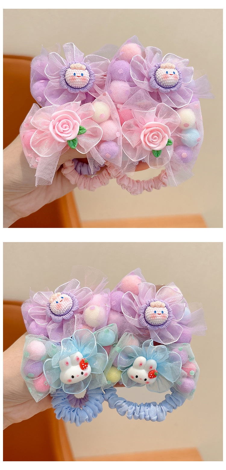 Niñas y niños escolares cuerdas de cabeza de alta elasticidad anillo de cabello lindos dibujos animados de color cuerdas de cabello de cabeza de bola de cola de caballo alta