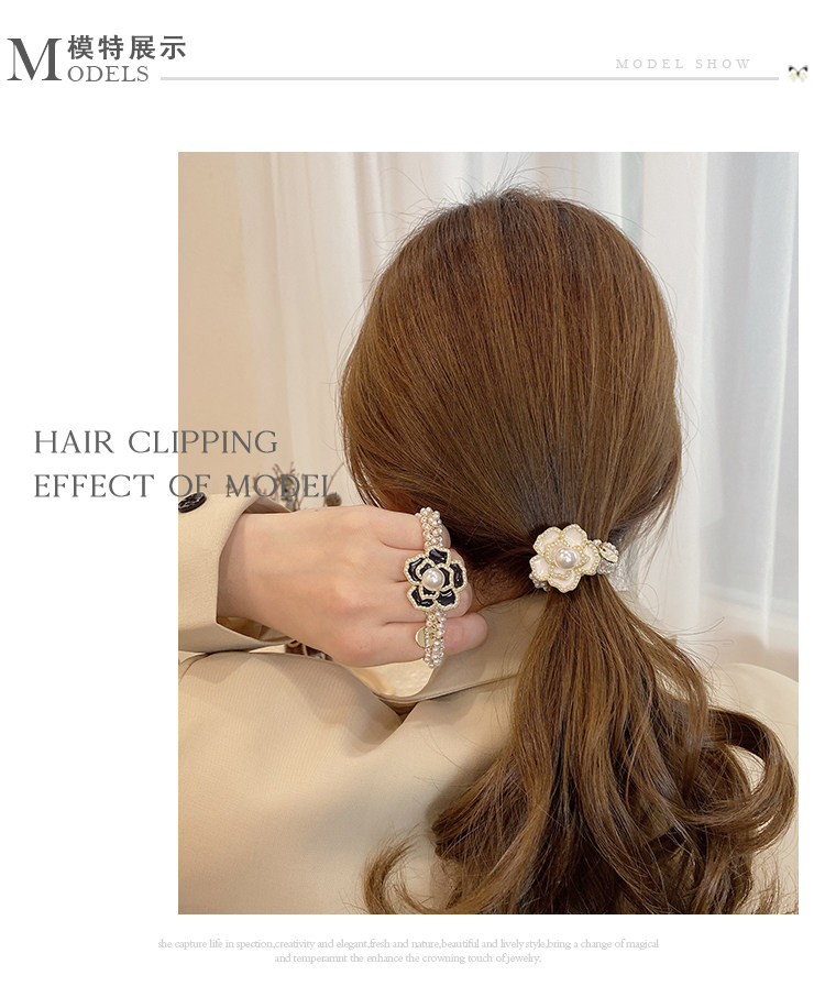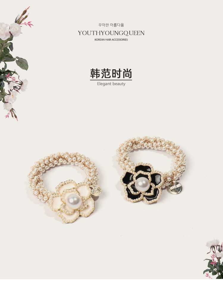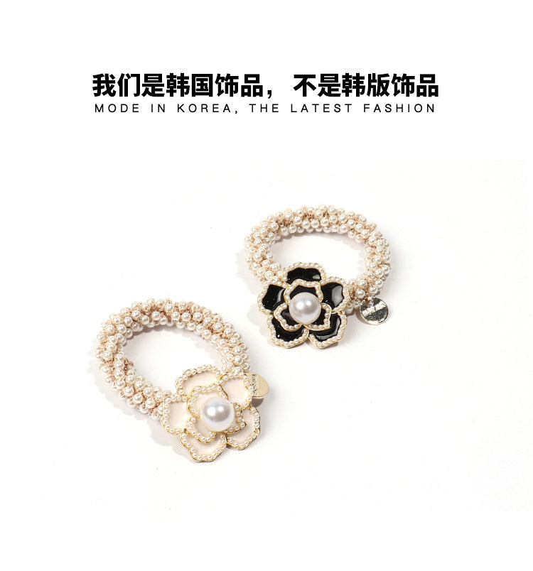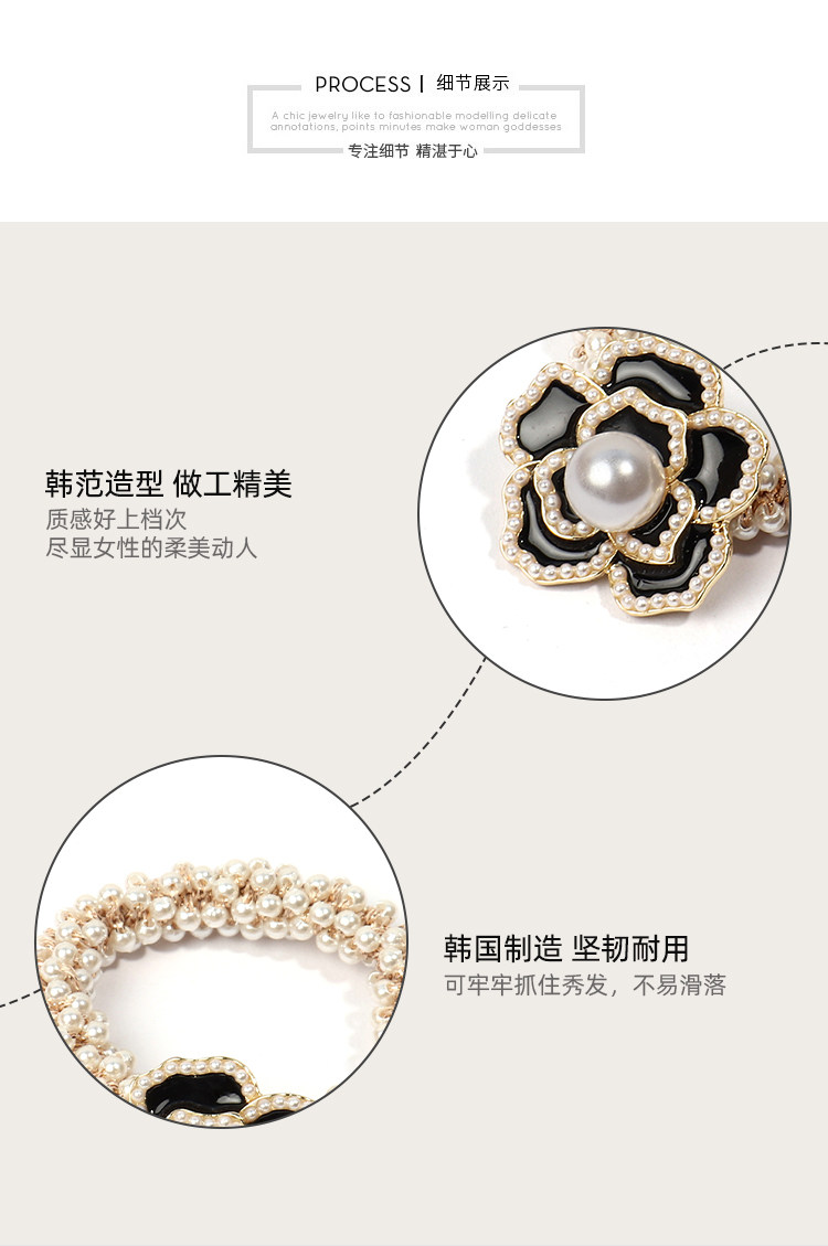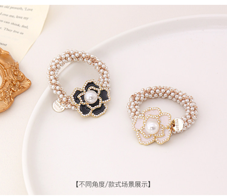 Camellia negra cuerda de cabello de perlas de mujer coreana in cuerda de cabello anillo de cabello red atado correa de cabello pequeño tocado de fragancia
