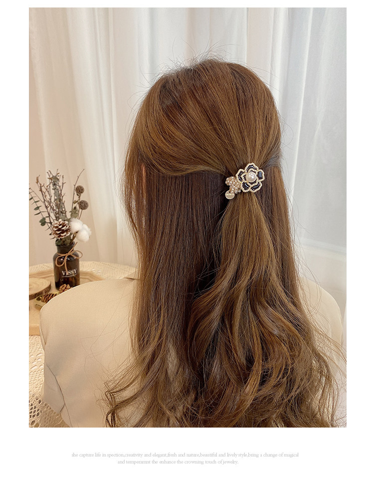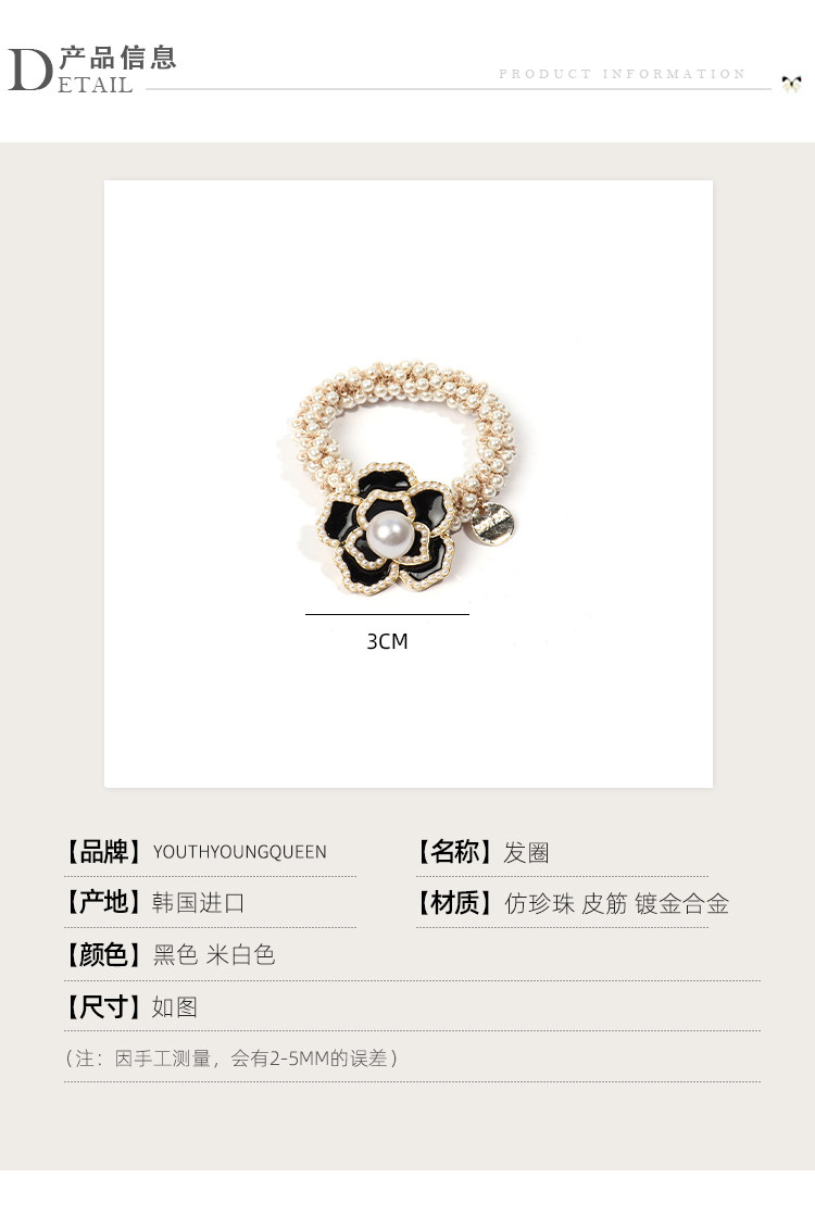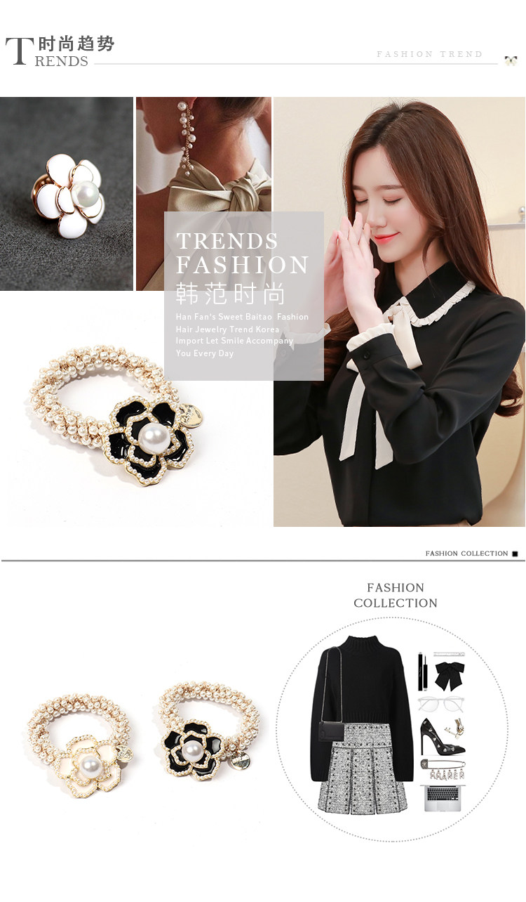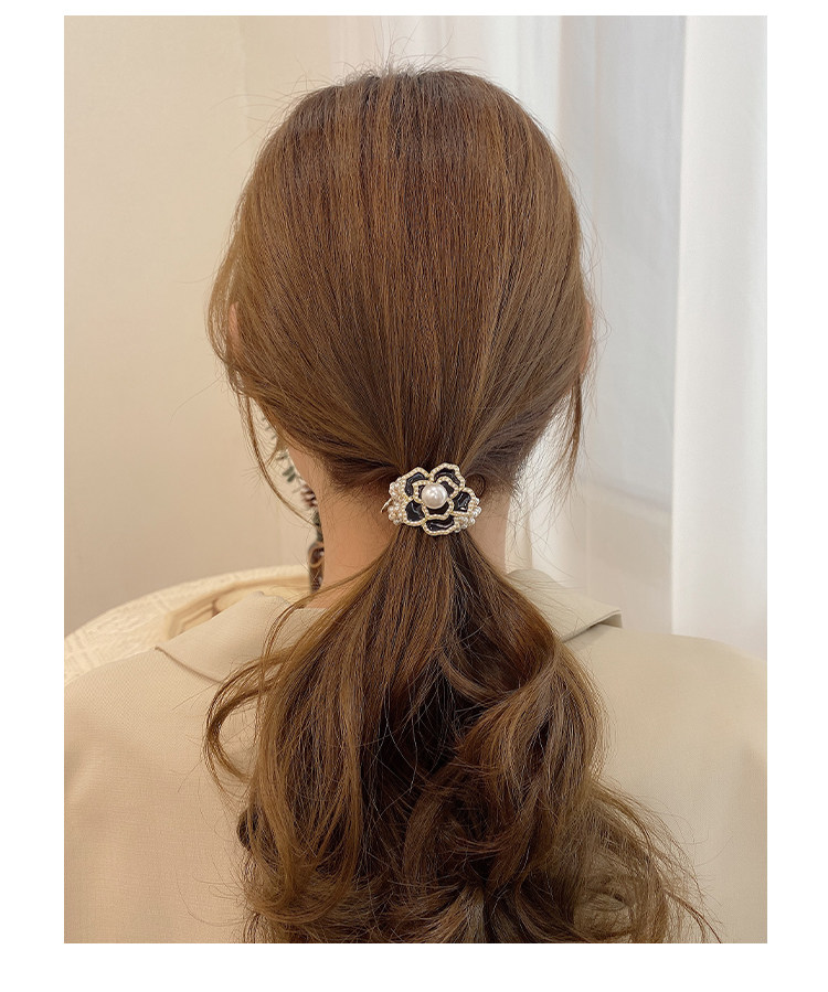 Camellia negra cuerda de cabello de perlas de mujer coreana in cuerda de cabello anillo de cabello red atado correa de cabello pequeño tocado de fragancia