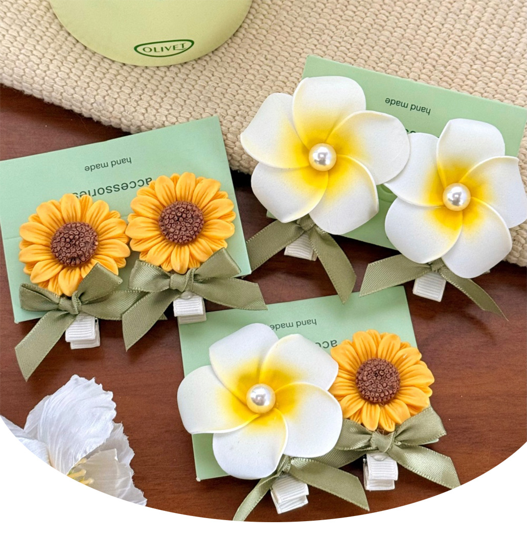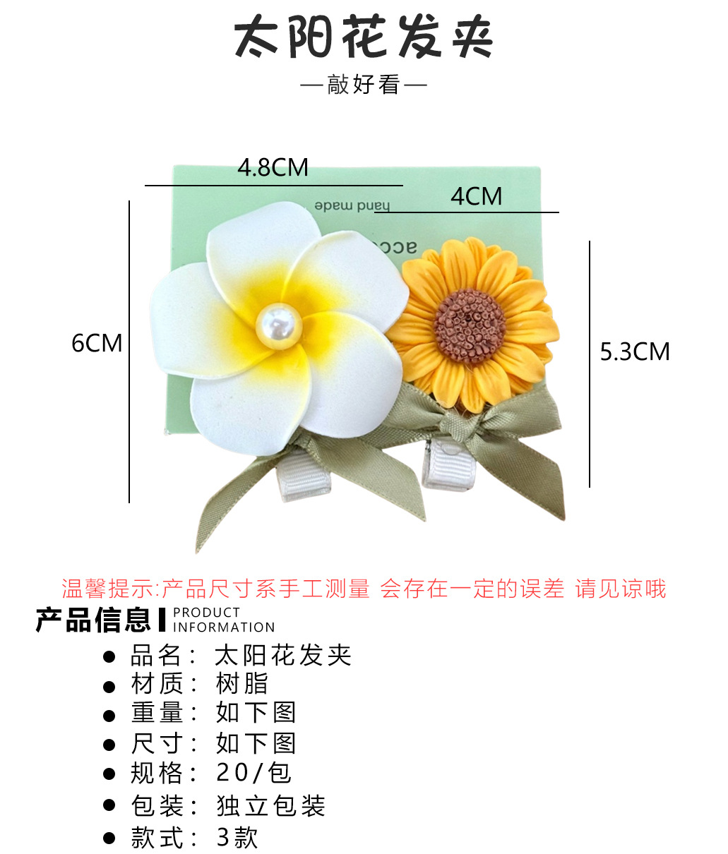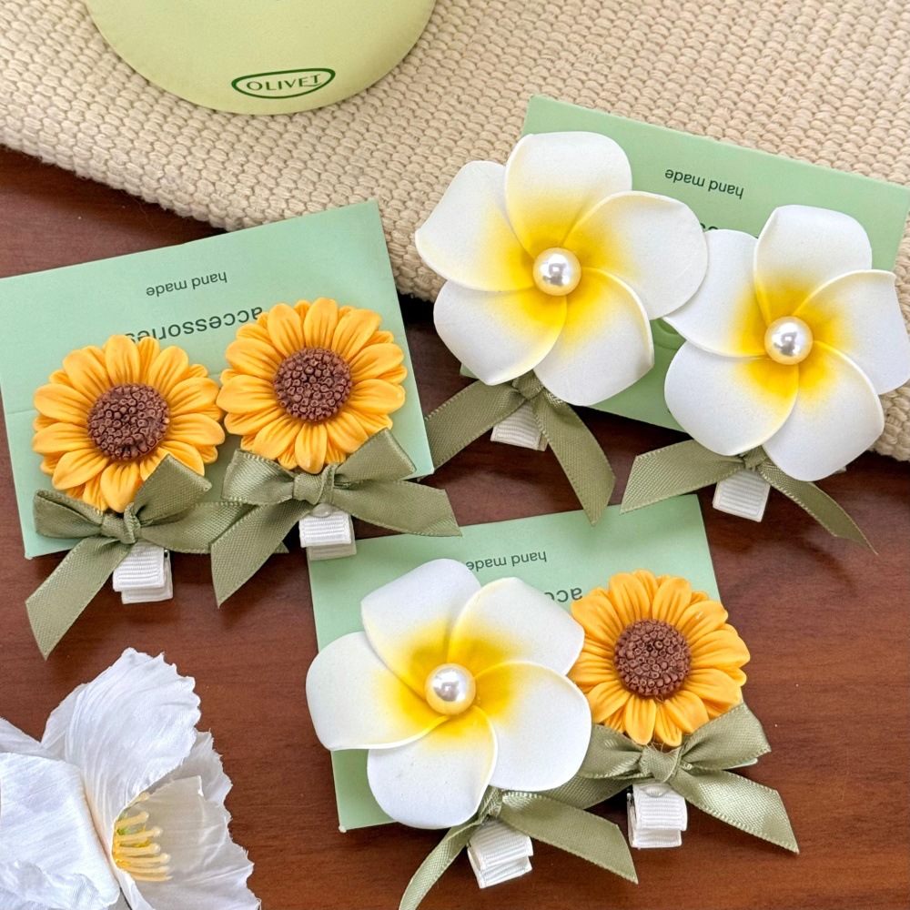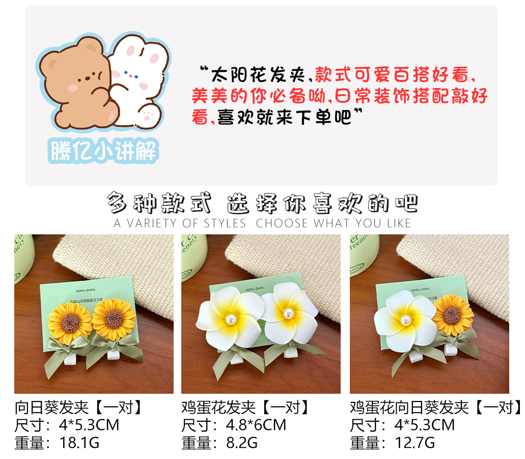 Hermoso girasol huevo de flores clip para el cabello interesante pequeño fresco dulce chica lateral clip de boca de pato clip para el cabello de niños