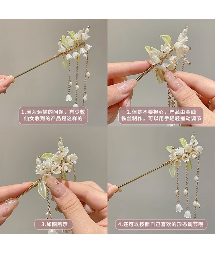 Nueva horquilla, flor de los valles, borla, cabeza de bola, horquilla de madera, estilo antiguo, sensación de alto nivel, horquilla, accesorios para el cabello Hanfu, chica de la parte posterior de la cabeza