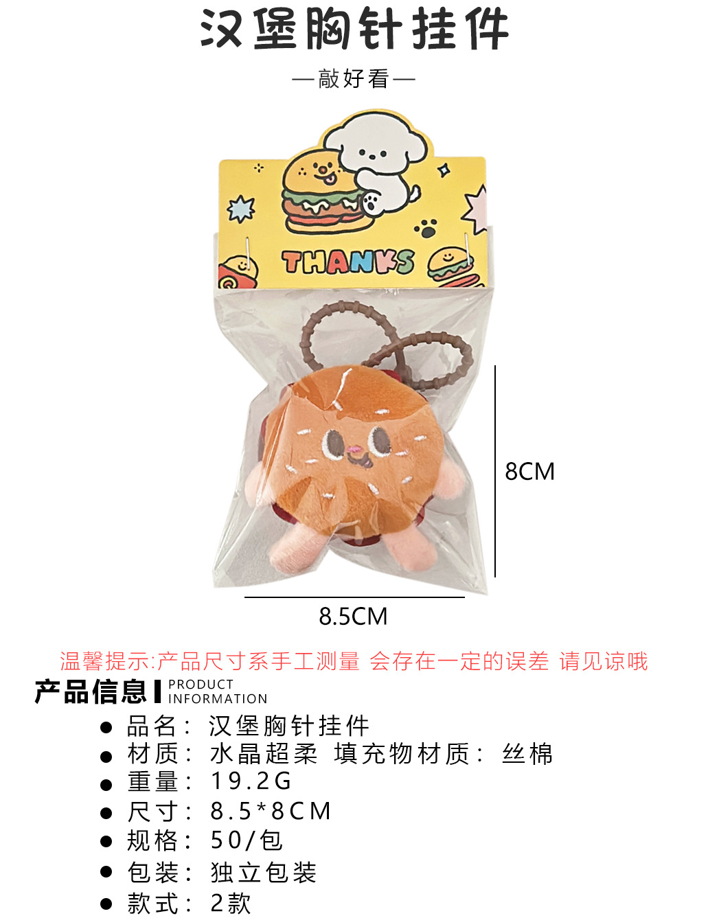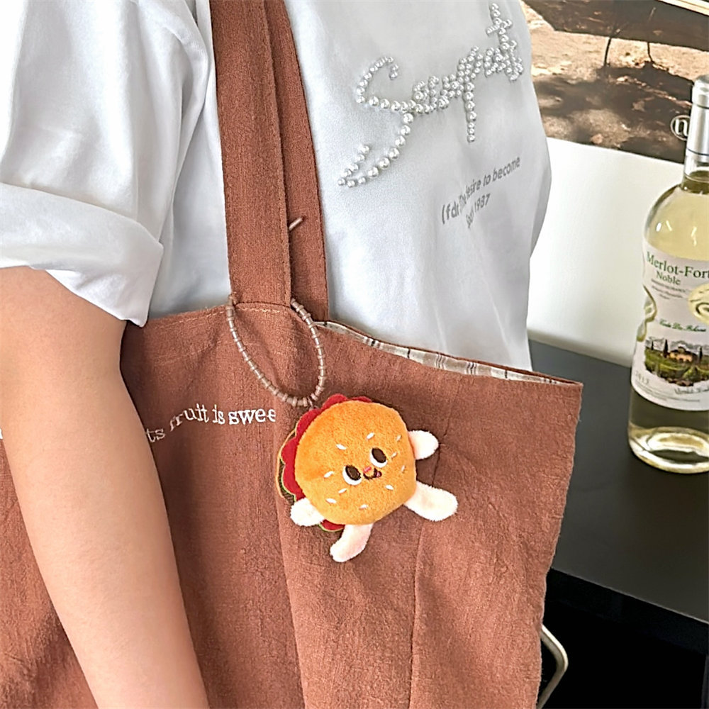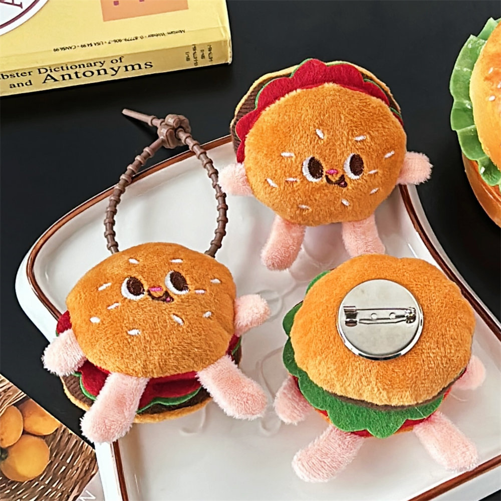 Nuevo lindo muñeca de hamburguesa colgante broche mochila chica colgante accesorios colgante decoración estudiantil broche al por mayor