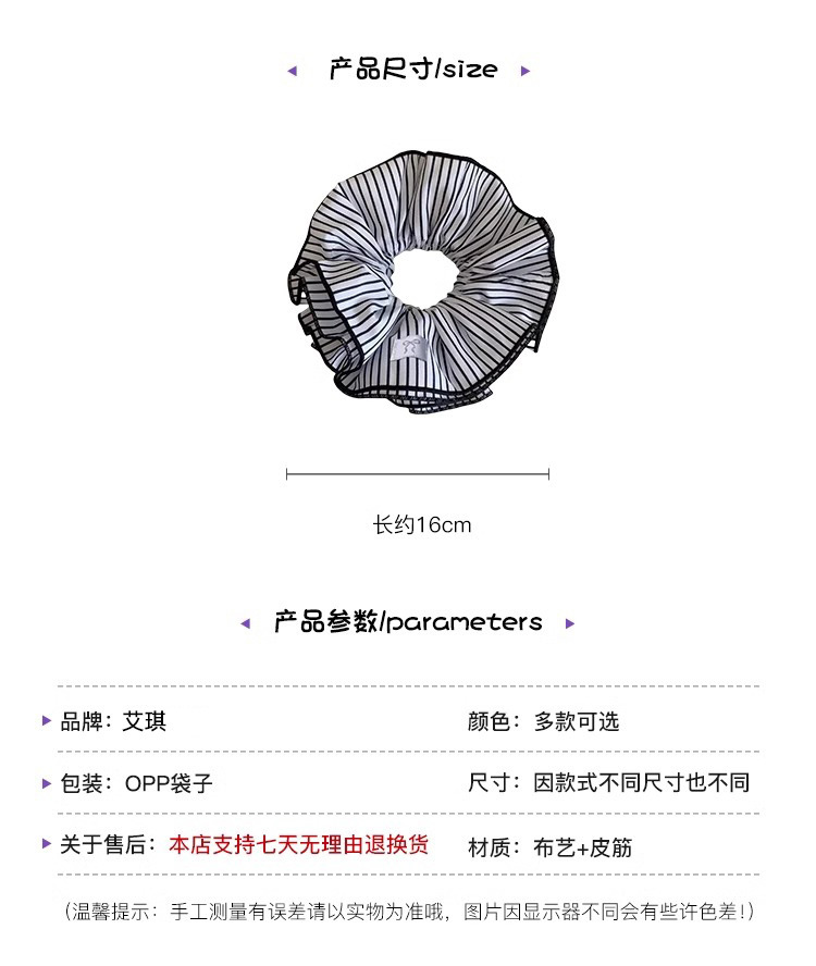 | Colores | 4 # blanco azul-16cm,3 # color café-16cm,2 # azul 16cm,1 # rayas negras-16cm,5 # lazo para el cabello blanco alrededor de 18cm,7 # Anillo de pelo de ballet beige unos 20cm ~,6 # Anillo de pelo de ballet púrpura unos 20cm ~,8 # Se puede ver el frente de la falda y el lazo para el cabello ~ Aproximadamente 18,5 cm |