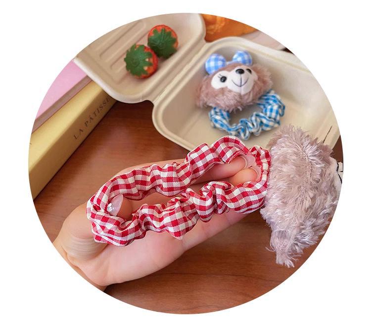 Anillo de cabello Shelly Mei, dibujos animados para mujeres, cuerdas de cabello encantadoras para jóvenes, dibujos animados jk, tocado de viento, anillo de cuero a cuadros rojos japoneses.