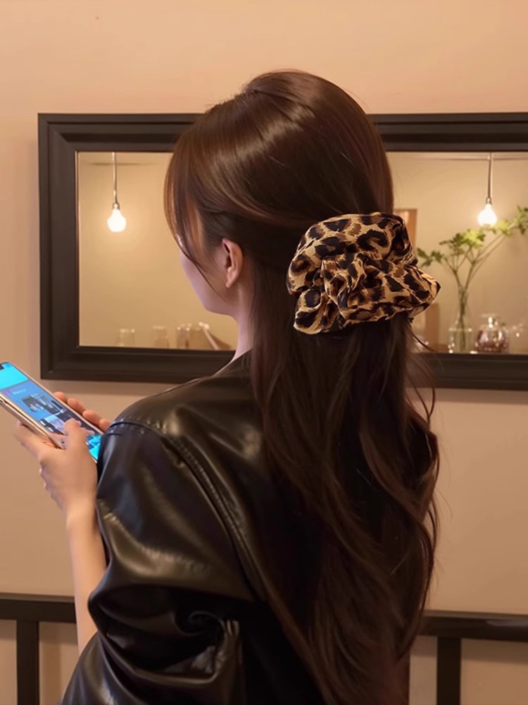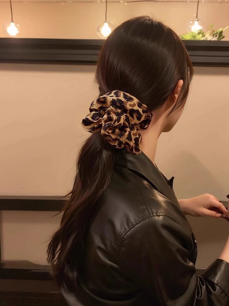 Leopardo anillo de cabello de intestino grande cuerda de cuero super grande correa de correa de cabello de alta calidad de mujer cuerda de cabello de cola de caballo de alta elasticidad y durabilidad