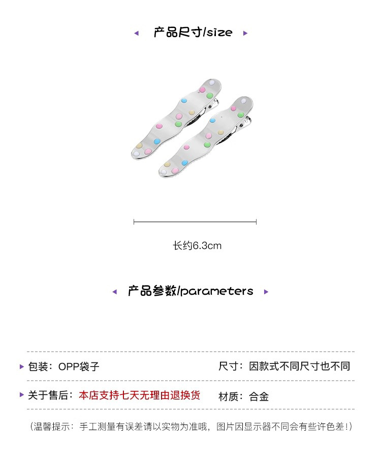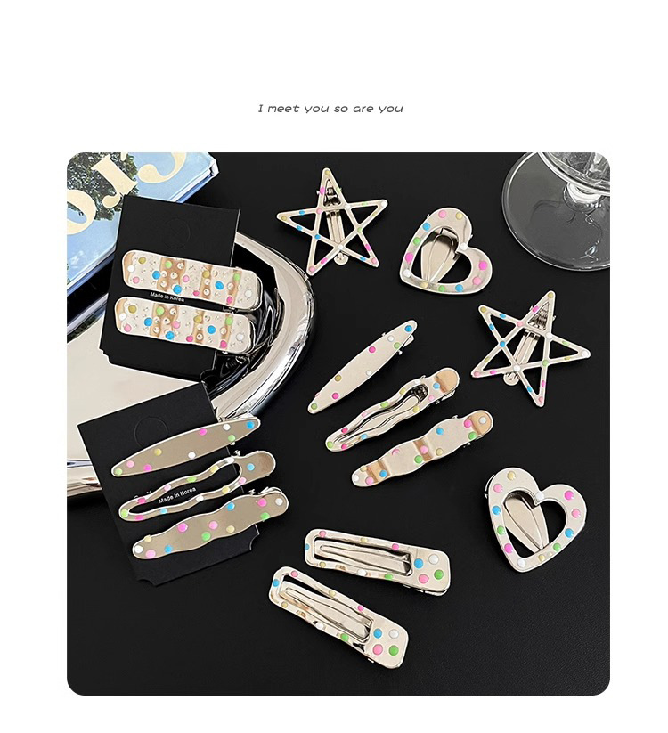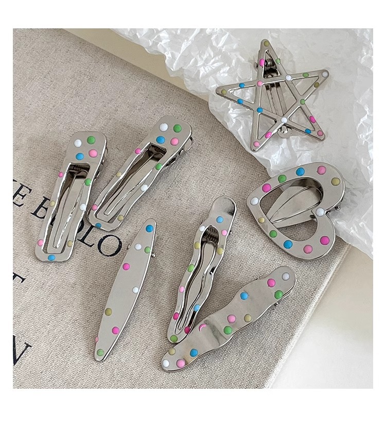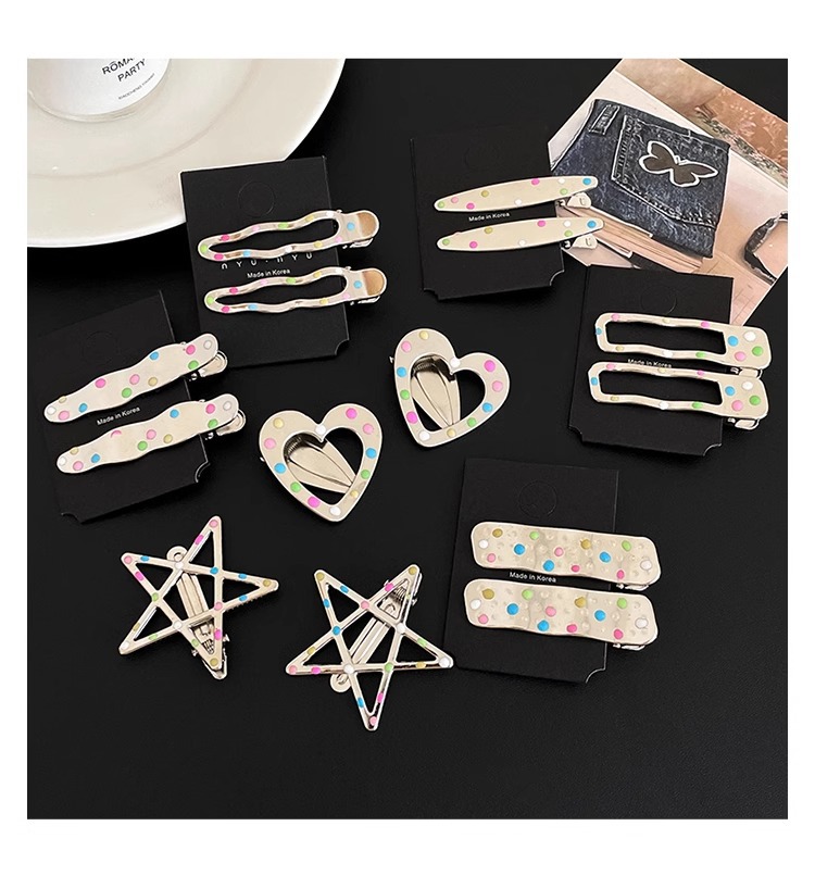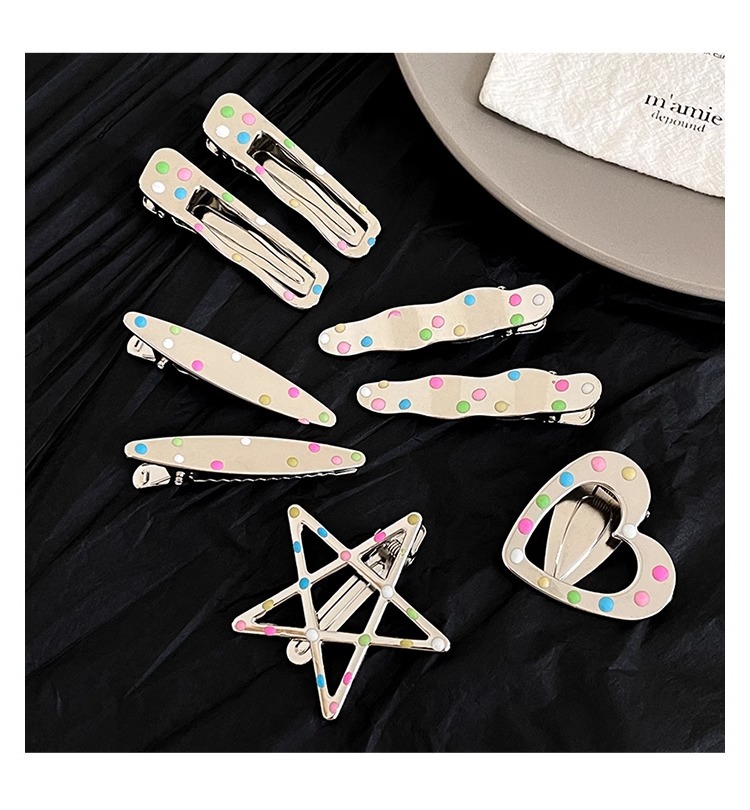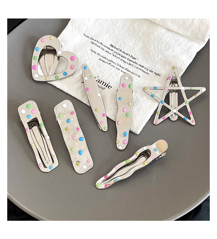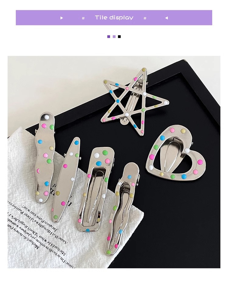 Peñón colorido goteo de aceite de plata punto de onda de metal pentaco pinzas de cabello frisa lateral pinzas de cabello pinzas de boca de pato nuevo estilo