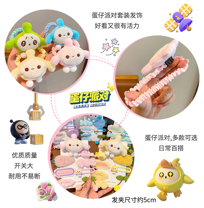 2023 nuevo huevo horquilla de dibujos animados linda chica de alto aspecto horquilla banda de goma tocado tela de Niña Accesorios para el cabello
