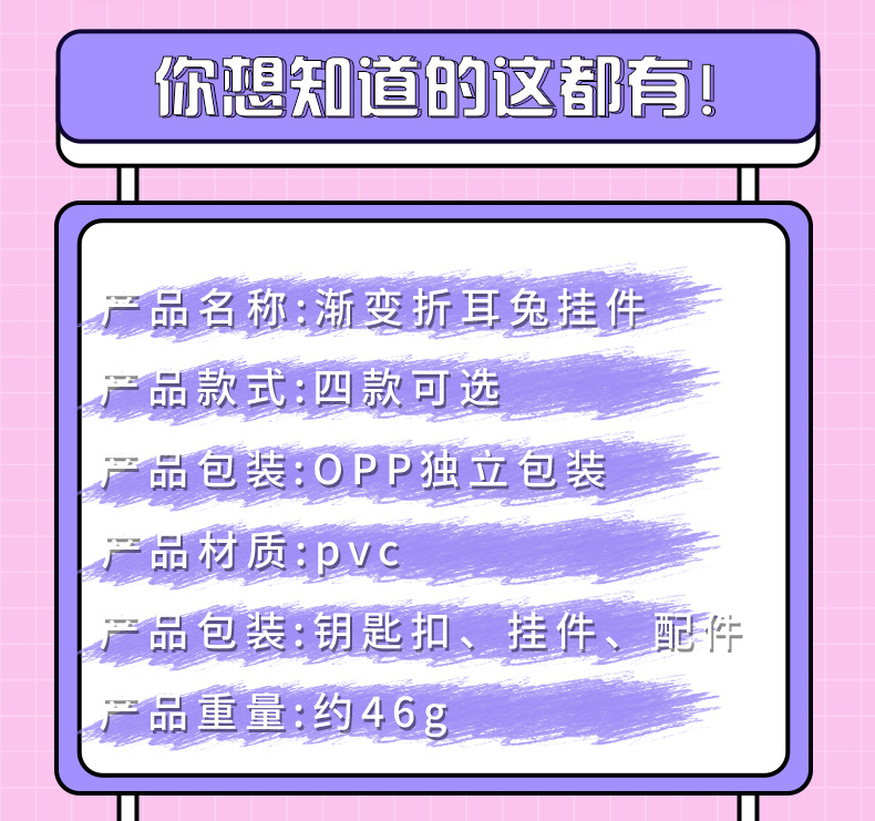 Accesorios llavero pequeño regalo moda gradiente creativo plegable conejo colgante lindo exquisito coche mochila