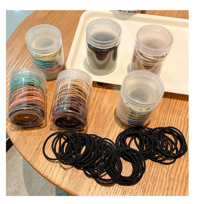 50 hilo negro embotellado cuerda de pelo fino cuerda de pelo al por mayor pequeña banda de goma banda de pelo cabeza de lazo femenino headwear anillo de goma cubierta de cuero