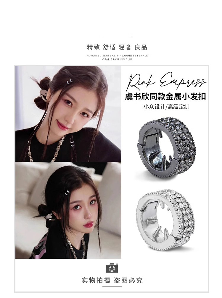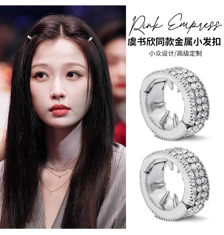 Botón de cabello de metal redondo Yu Shuxin el mismo tipo de pinzas de cabello de diamante fresa de la frente de la mujer pinzas de cabello de pequeño tamaño pinzas de cabeza