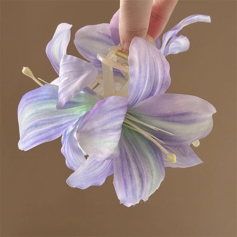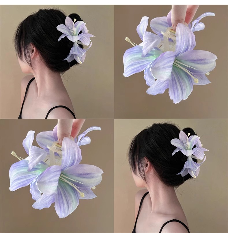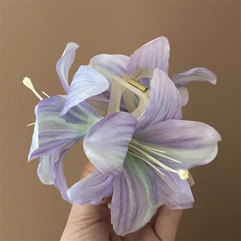 La atmósfera de flores de lirio púrpura atrapar clips de belleza de alto nivel detrás de la cabeza de cabello de tiburón atrapar clips de cabello adornamiento