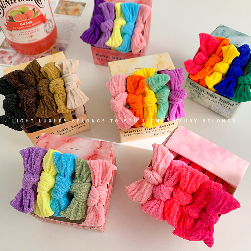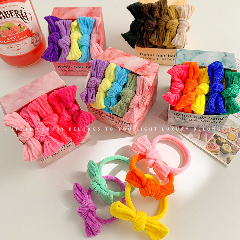Colorido arco cuerda de pelo de las mujeres de alta elástico durable cuerda de pelo lazo de pelo de alta Cola de Caballo banda de goma bola cabeza lindo anillo de pelo