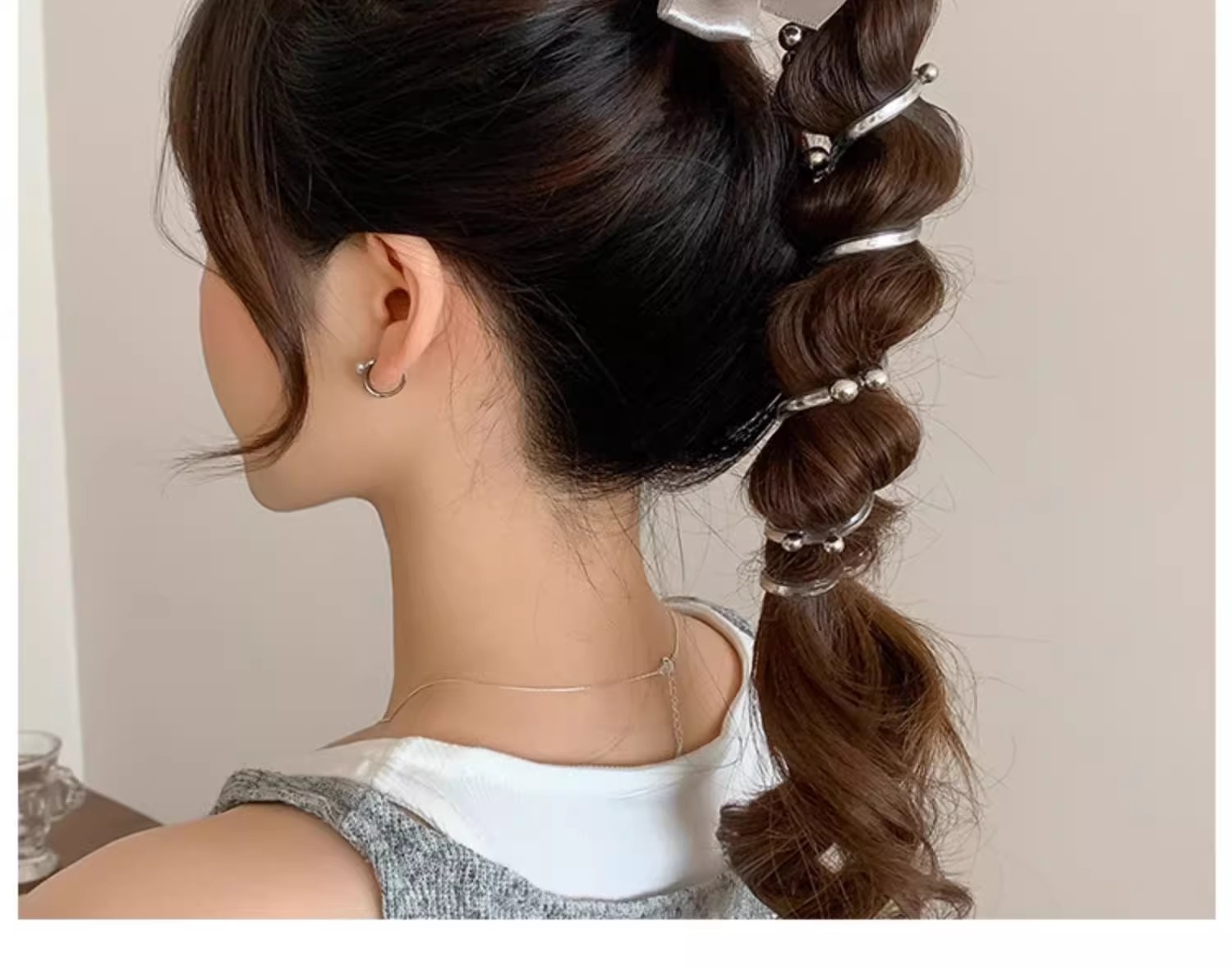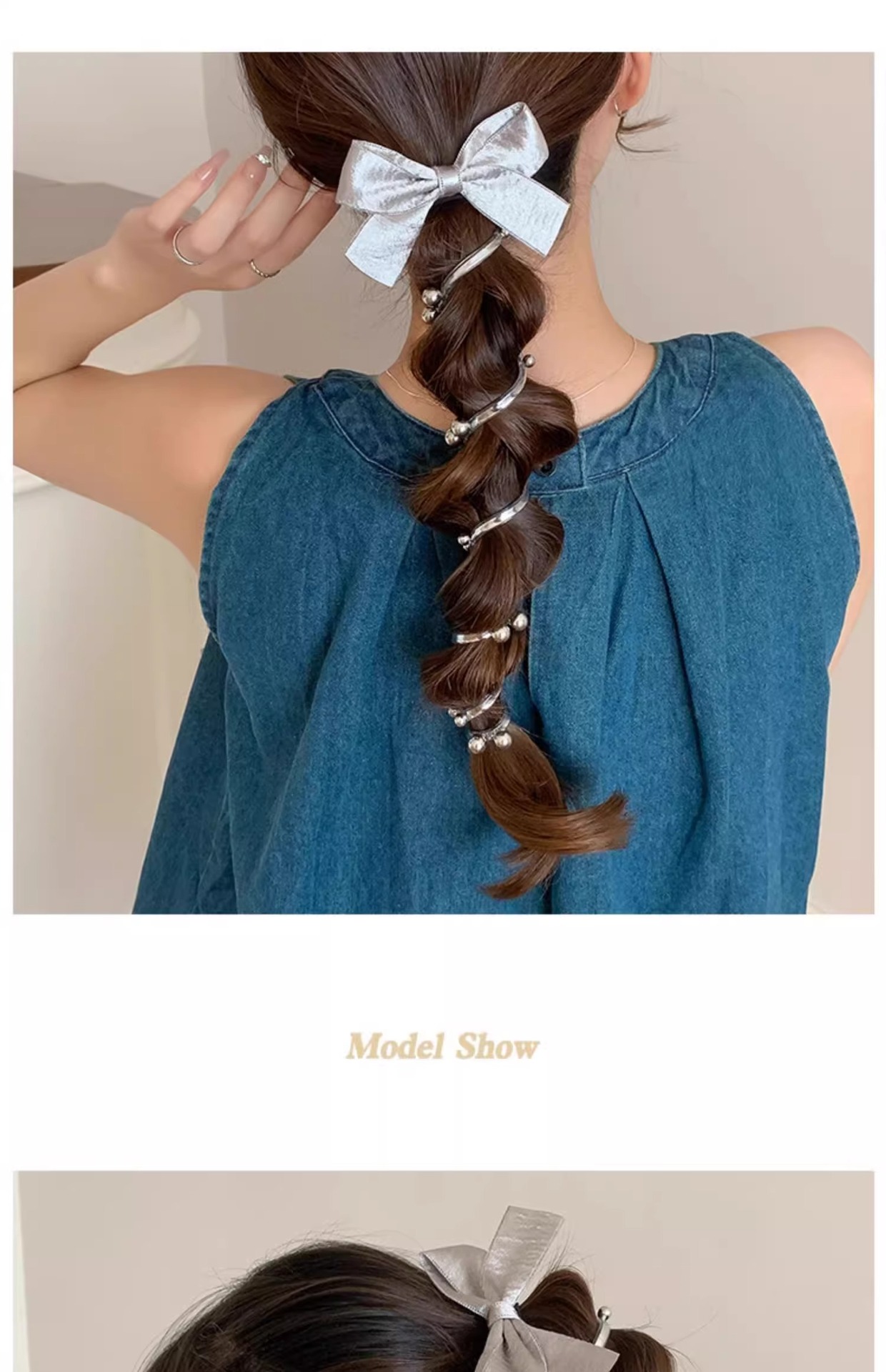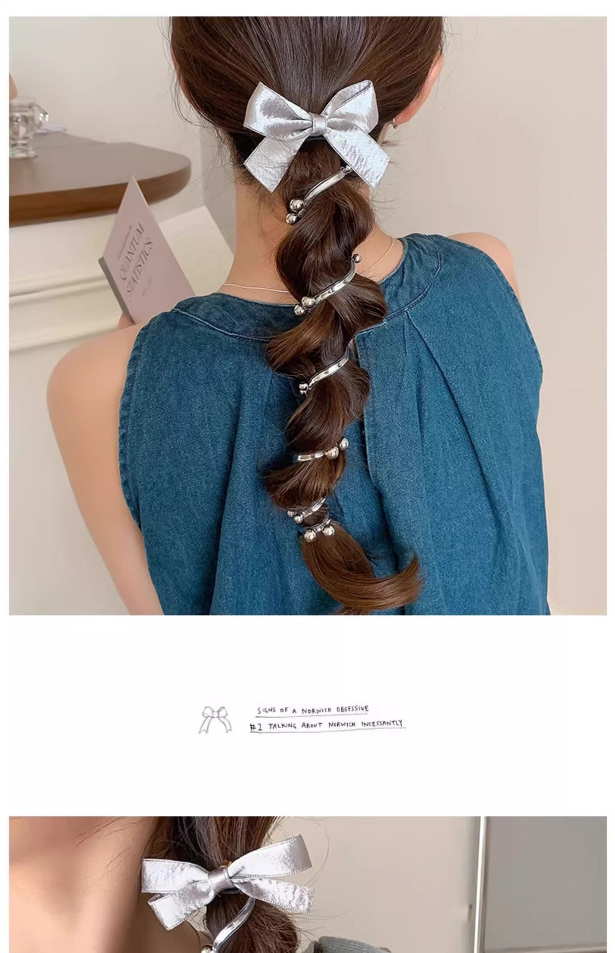 Línea telefónica de burbuja trenzada cabello de arco de plata anillo de cabello 2025 nuevo artefacto de cabello trenzado cabello de cola de caballo