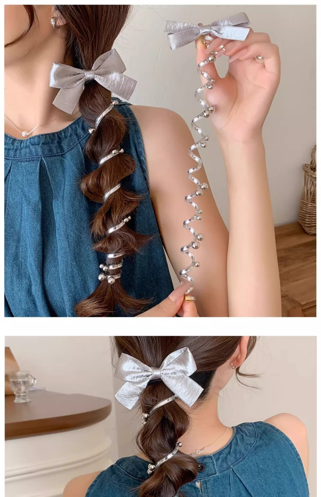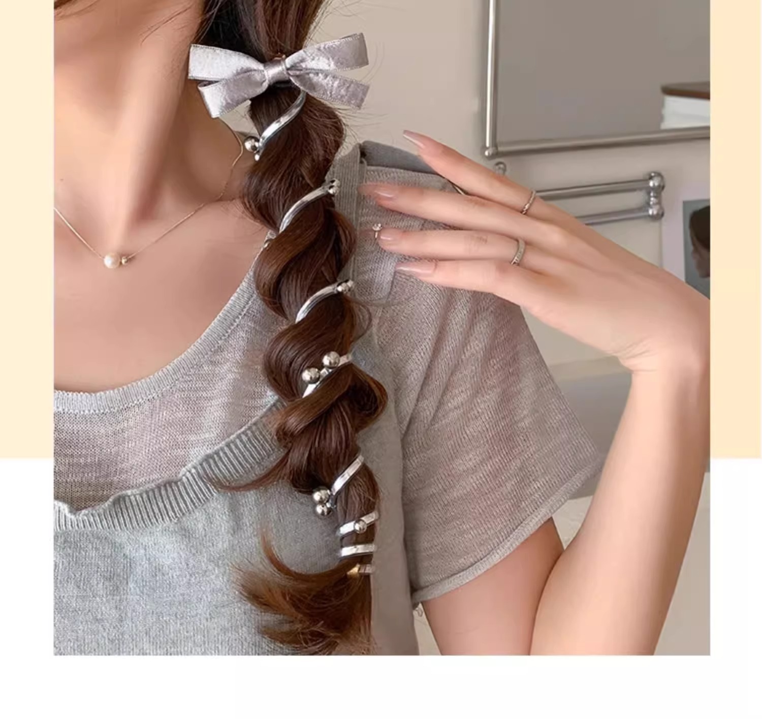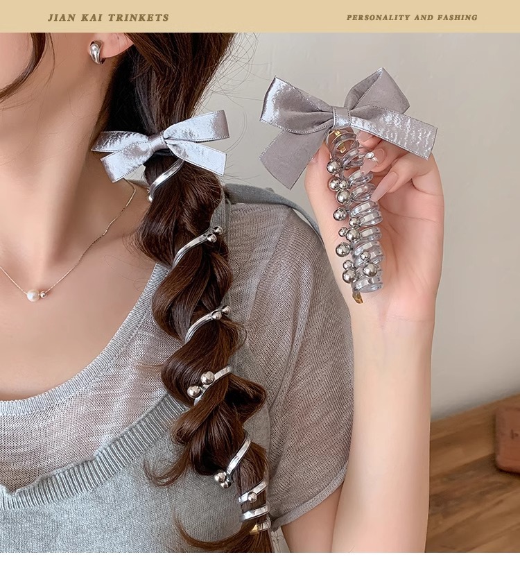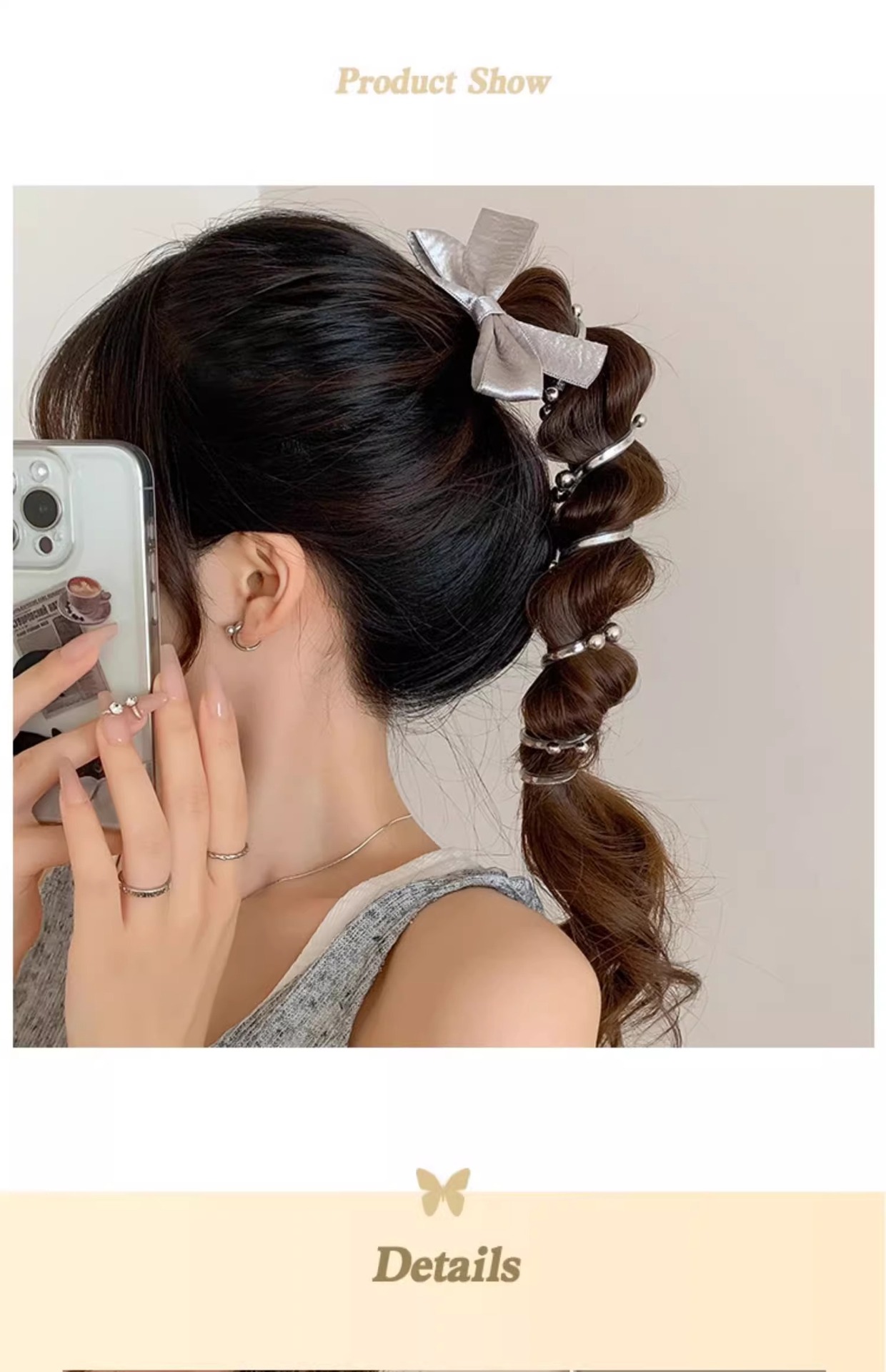 Línea telefónica de burbuja trenzada cabello de arco de plata anillo de cabello 2025 nuevo artefacto de cabello trenzado cabello de cola de caballo