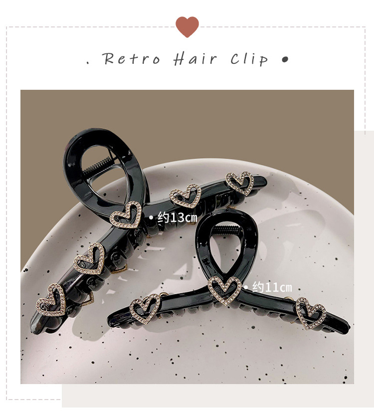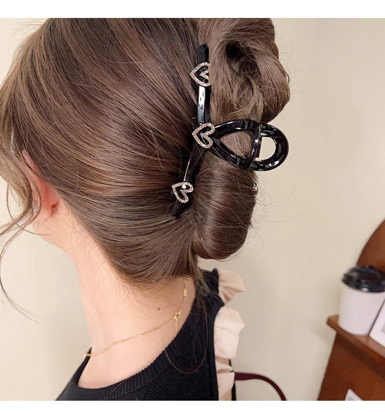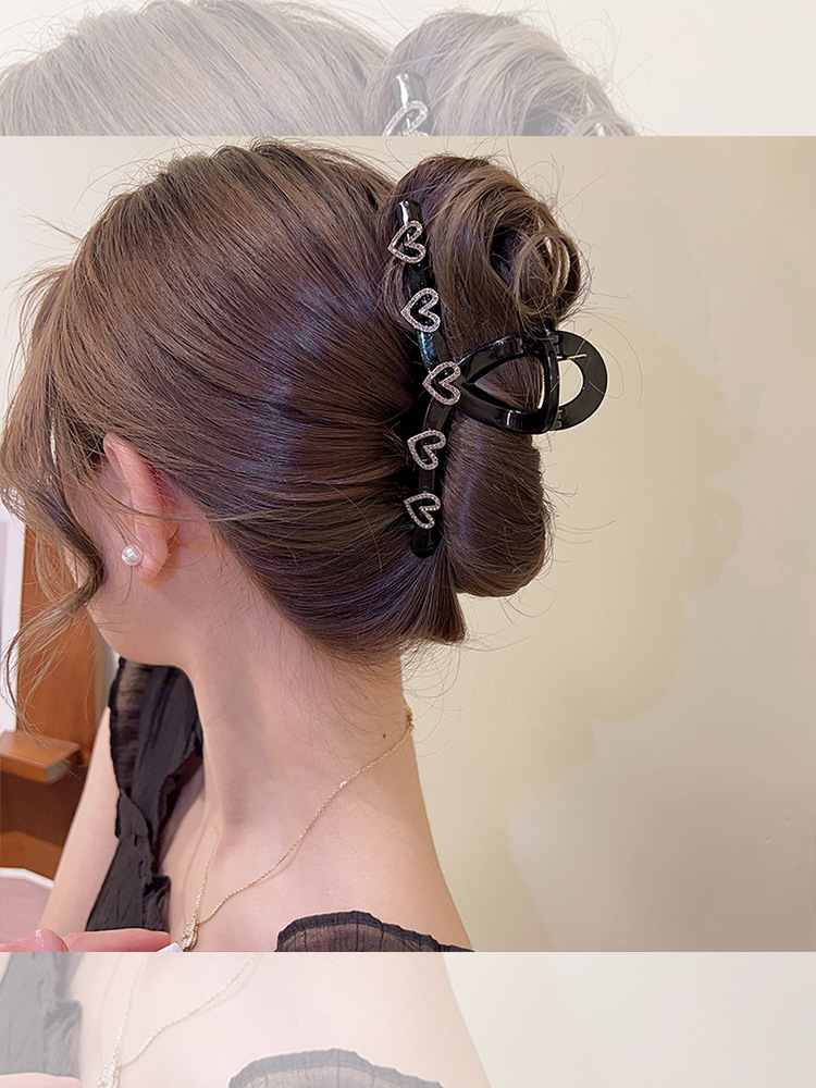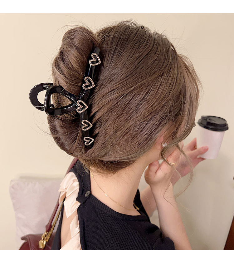 Clip de diamantes de imitación en forma de corazón clip grande tocado horquilla hembra horquilla trasera Internet celebridad clip de tiburón de alto grado exquisito