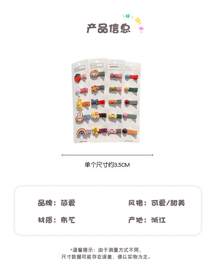 Corea del Sur traje de horquilla para niños ins dibujos animados lindo clip lateral Tarjeta de bebé pelo roto clip superior clip de borde de niña