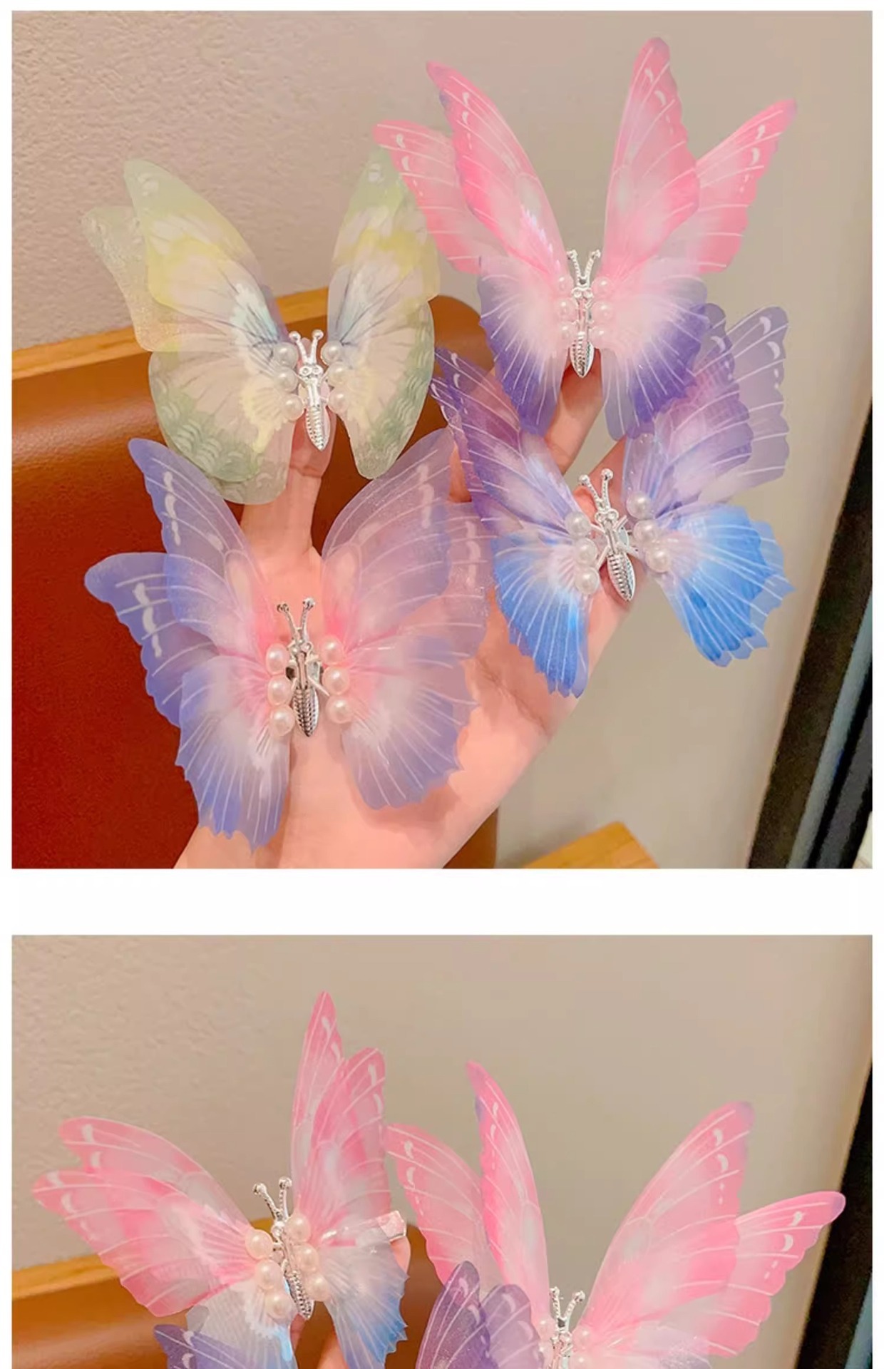 Clips para el cabello de los niños se moverá, clips para el cabello de mariposa de diamante, clips para el cabello de cabello lindo, clips para el lado, clips para el cabello roto, clips para el bang
