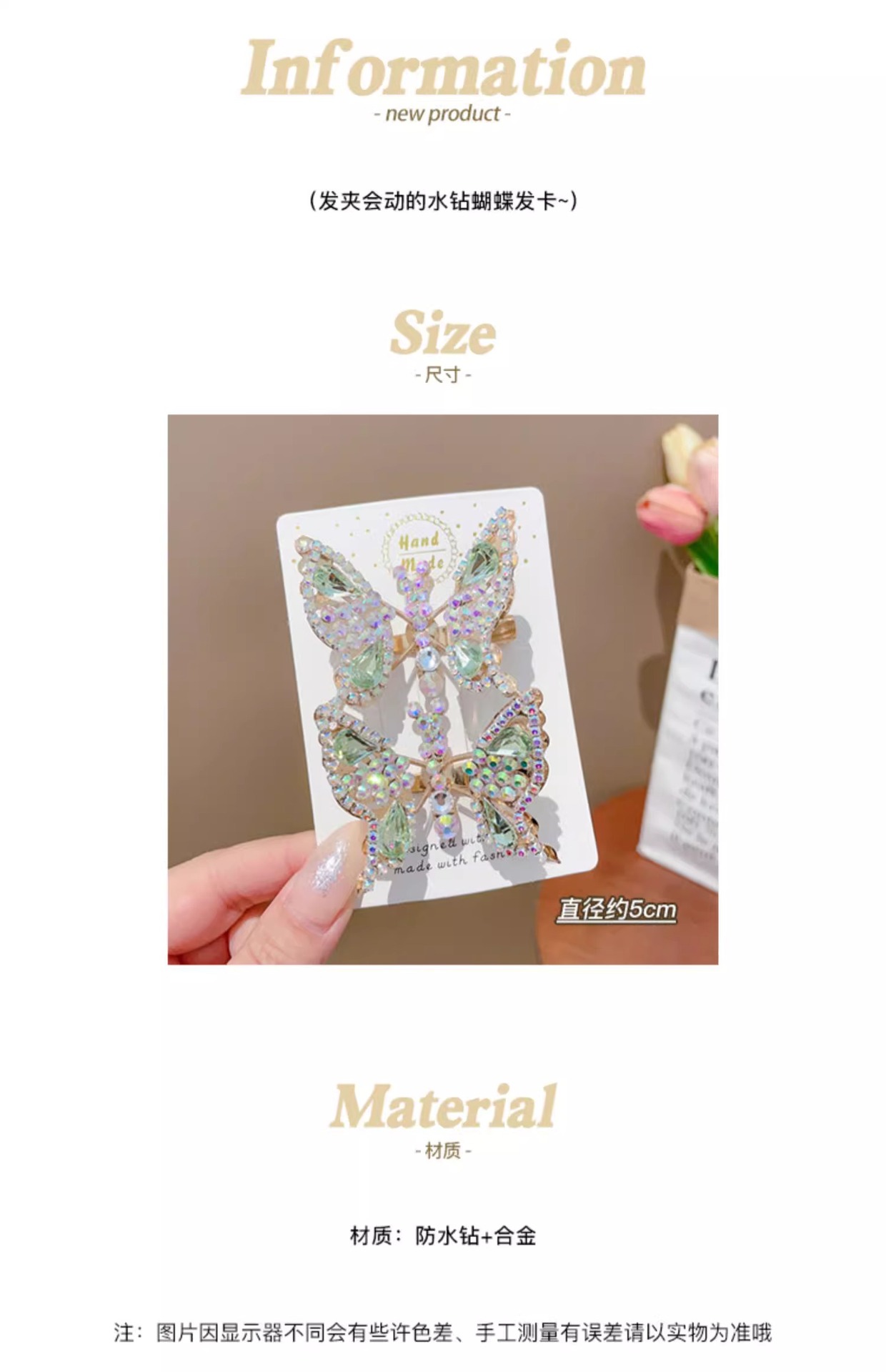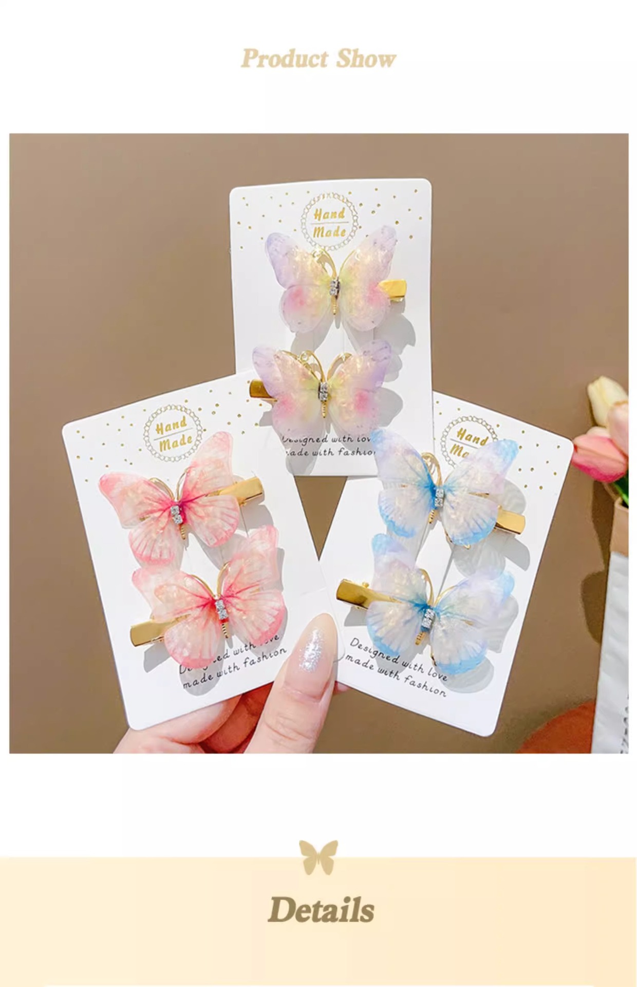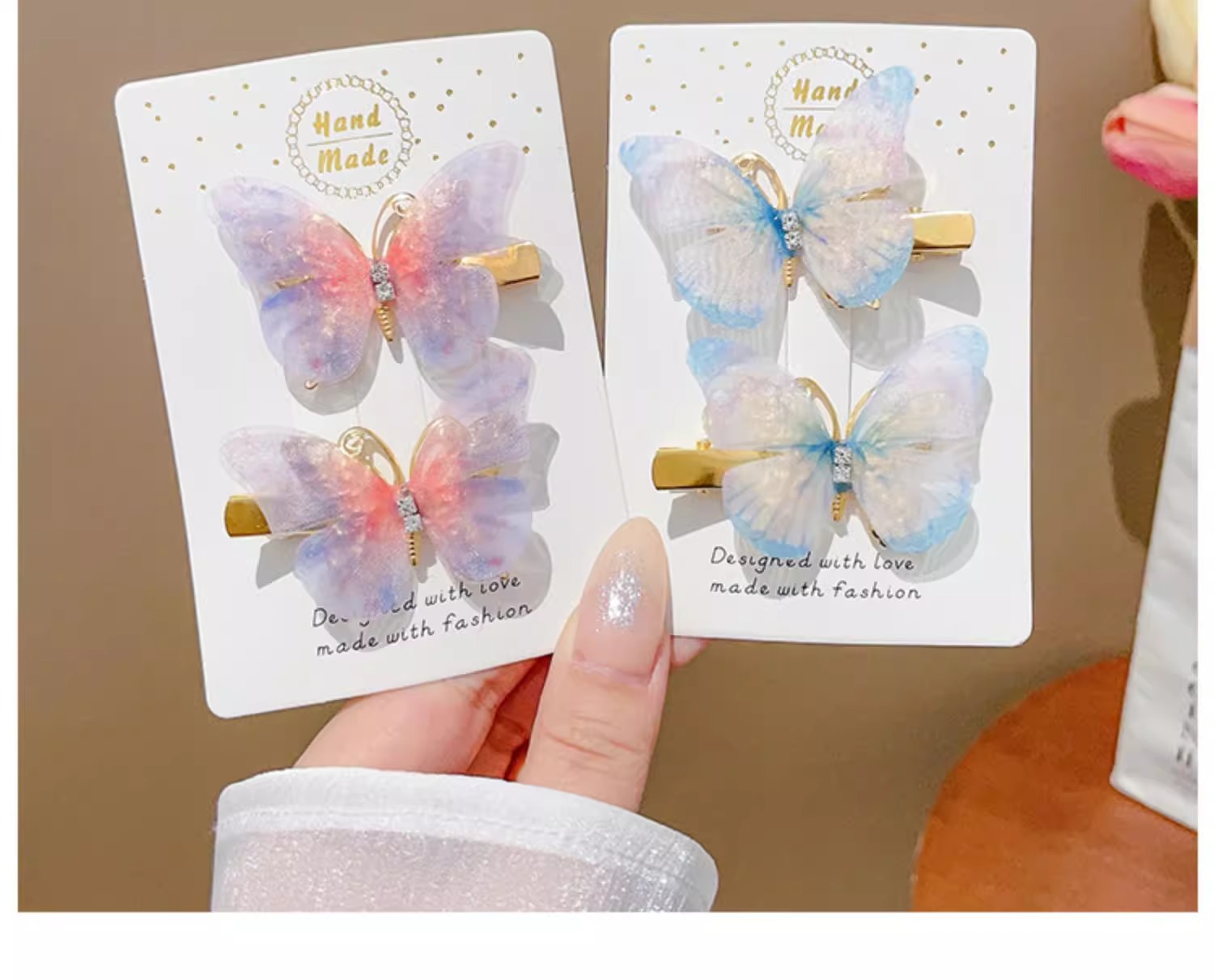 | Colores | 1 # Horquilla de mariposa degradada amarilla y morada 1 par.,3 # Un par de mariposas Yingying.,5 # Un par de mariposas de ensueño.,6 # Pinza de pelo de mariposa degradada azul rosa 1 par.,7 # Pareja de mariposas color flor de cerezo.,8 # Pareja de mariposas rosas.,9 # Un par de colores verdes claros.,10 # Horquilla de mariposa degradada azul violeta 1 par.,11 # Pinza de pelo de mariposa degradada rosa púrpura 1 par.,12 #1 par de mariposas degradadas en rosa y amarillo.,23 # Púrpura colorido.,24 # Azul hielo.,25 # rosa degradado.,27 # Matcha verde.,28 # púrpura.,29 # Rosa.,30 # Rosa roja.,32 # Rosa púrpura.,35 # Rosa claro. |