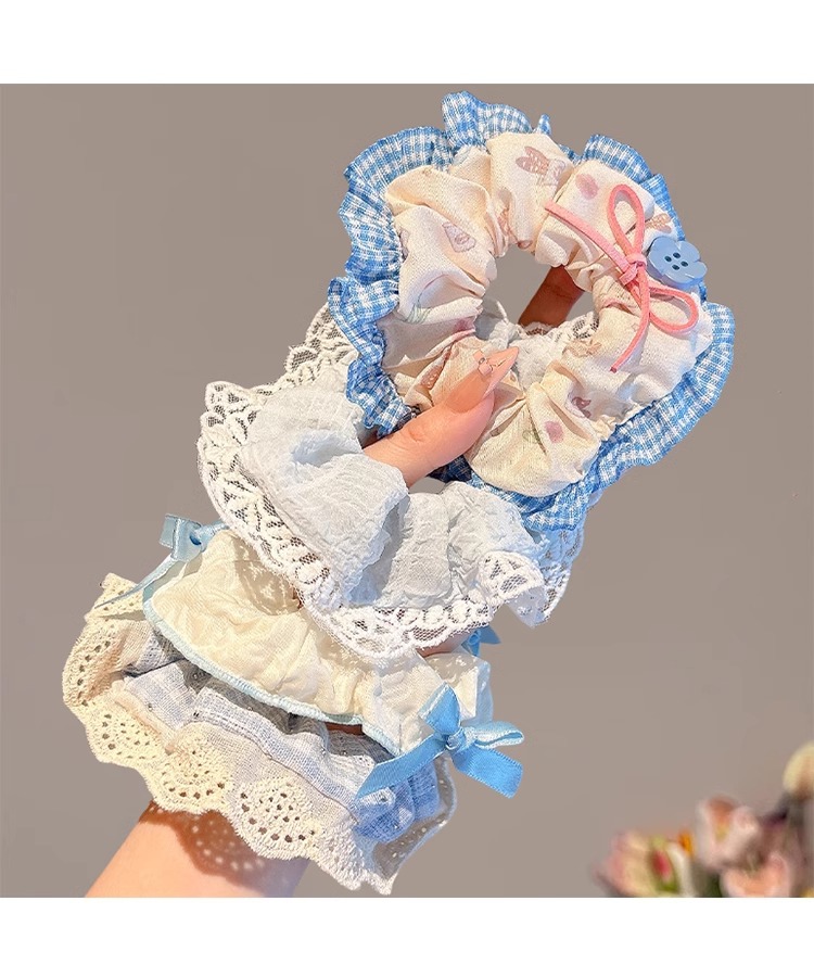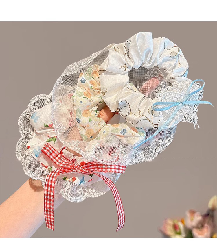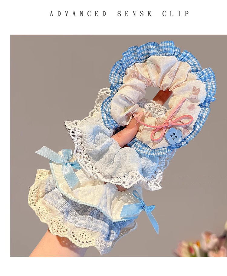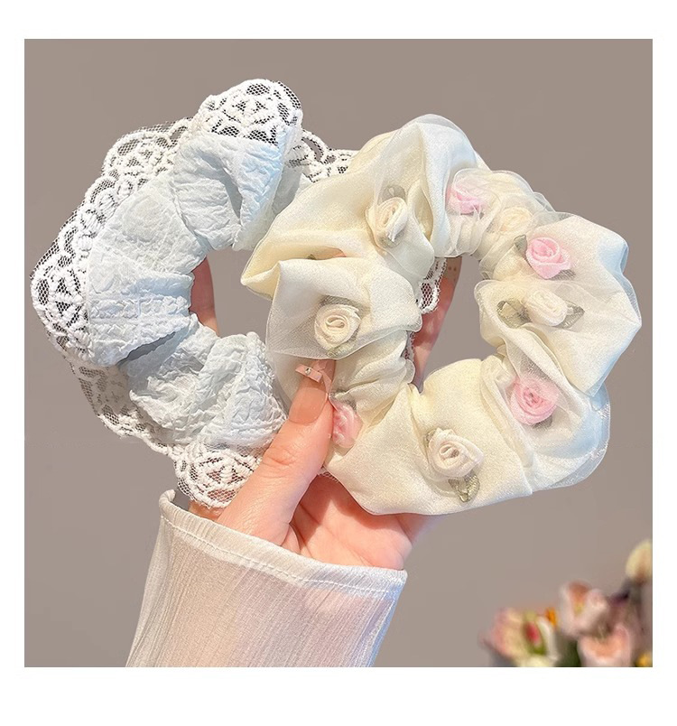 Nudo de encaje pequeño coreano, lazo para el cabello de intestino grueso, lazo de encaje de cola de caballo para mujer, cuerda para el cabello fresca, cuerda para el cabello de alto valor para niña