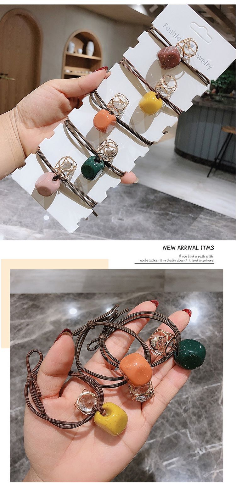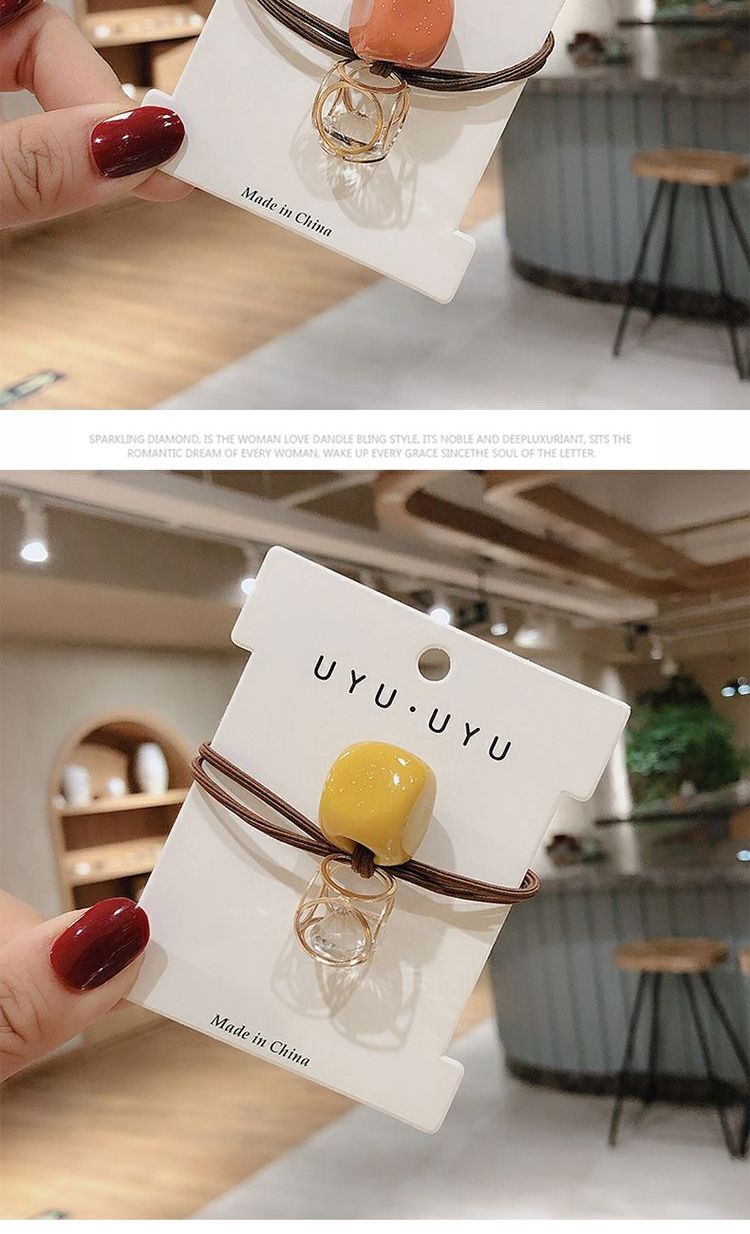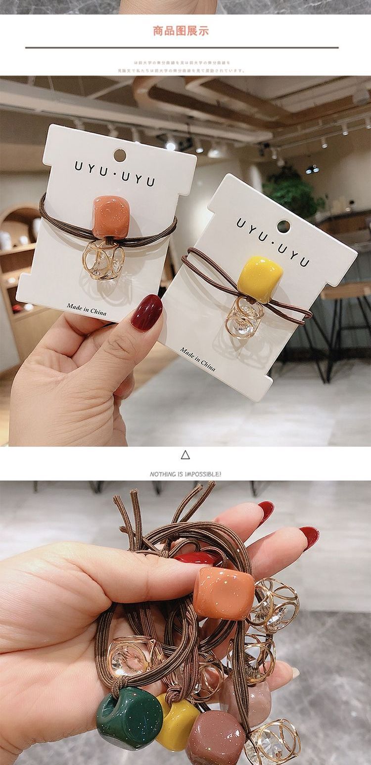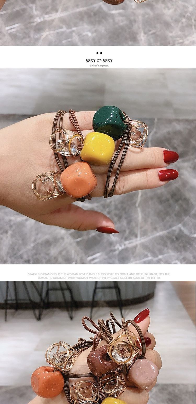Accesorios para el cabello banda de pelo cuerda de pelo de alta elástica cuerda de lazo de pelo femenino banda de goma cabeza de cristal cuerda red banda de goma roja banda de goma linda femenina