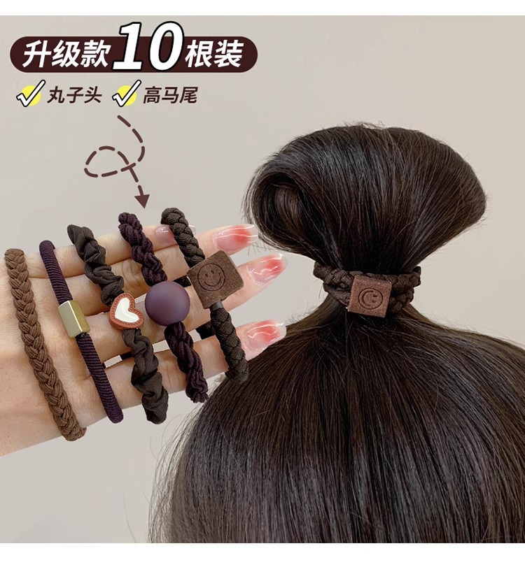 Alta elasticidad y durabilidad como correa de goma para mujeres, color curry simple, cuerda de cabello de cola de caballo alta, anillo de cabello sin heridas de alta calidad