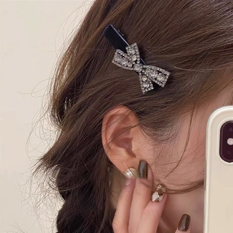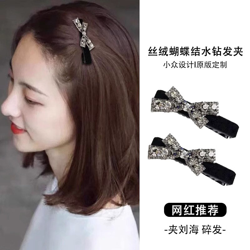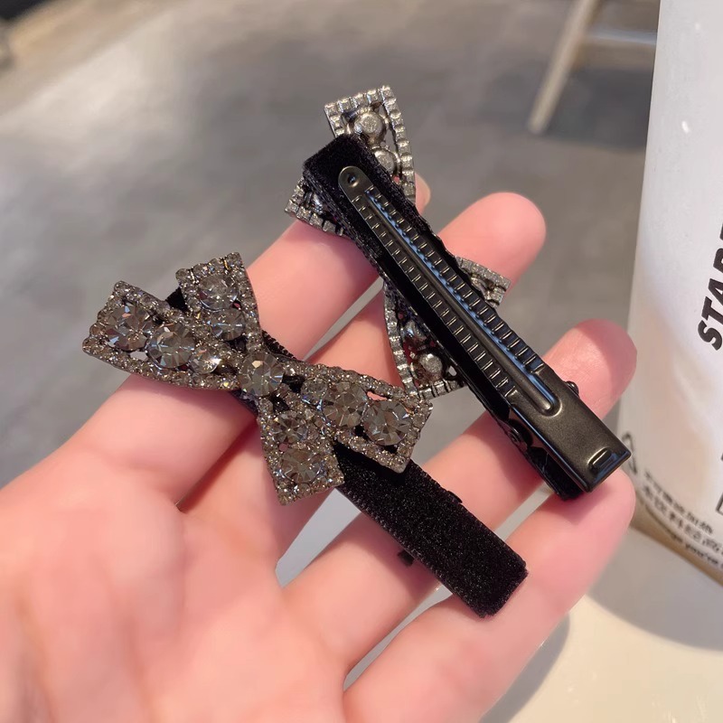 Clips de pelo de corbata de diamante ligero lujoso viento versátil arco de diamante clip de boca de pato de seda de mar clips de borde simple adornamiento para el pelo