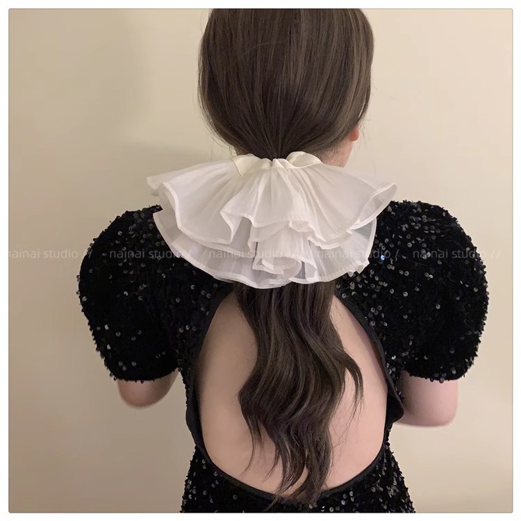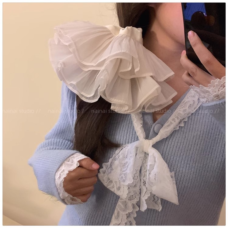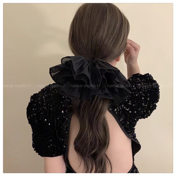 ¡Alta calidad y tamaño super grande! Falda colgante collar de cabello plegado doble cuerda de encaje alta sensación cuerda de cabello bolas mujeres