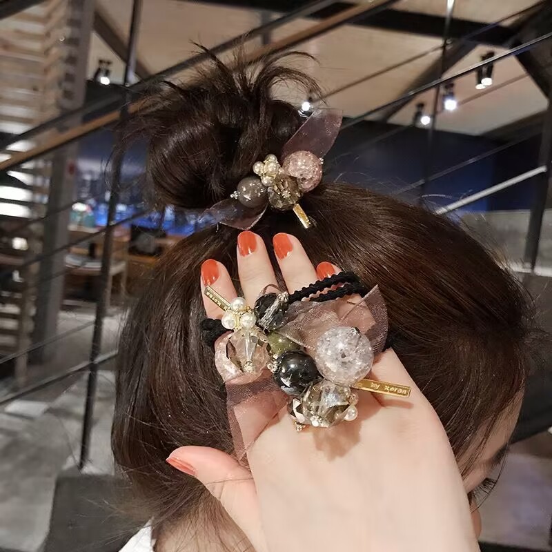 Banda de pelo de estilo coreano cuerda de pelo nueva banda de goma de moda de cristal de gama alta corbata cuerda de pelo pulsera banda de pelo dulce accesorios para el cabello