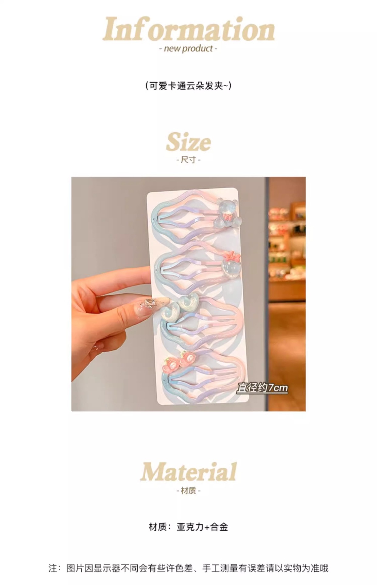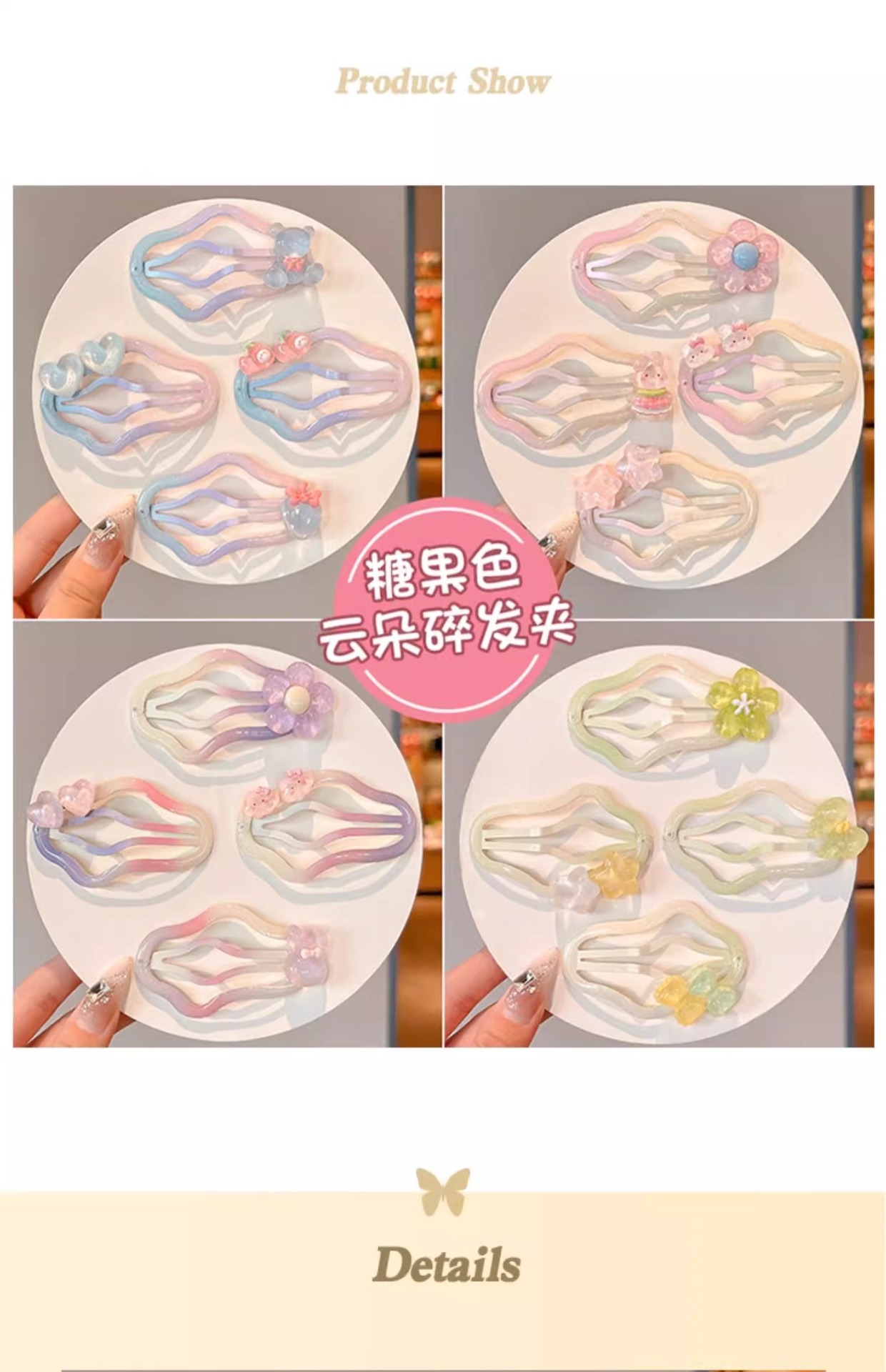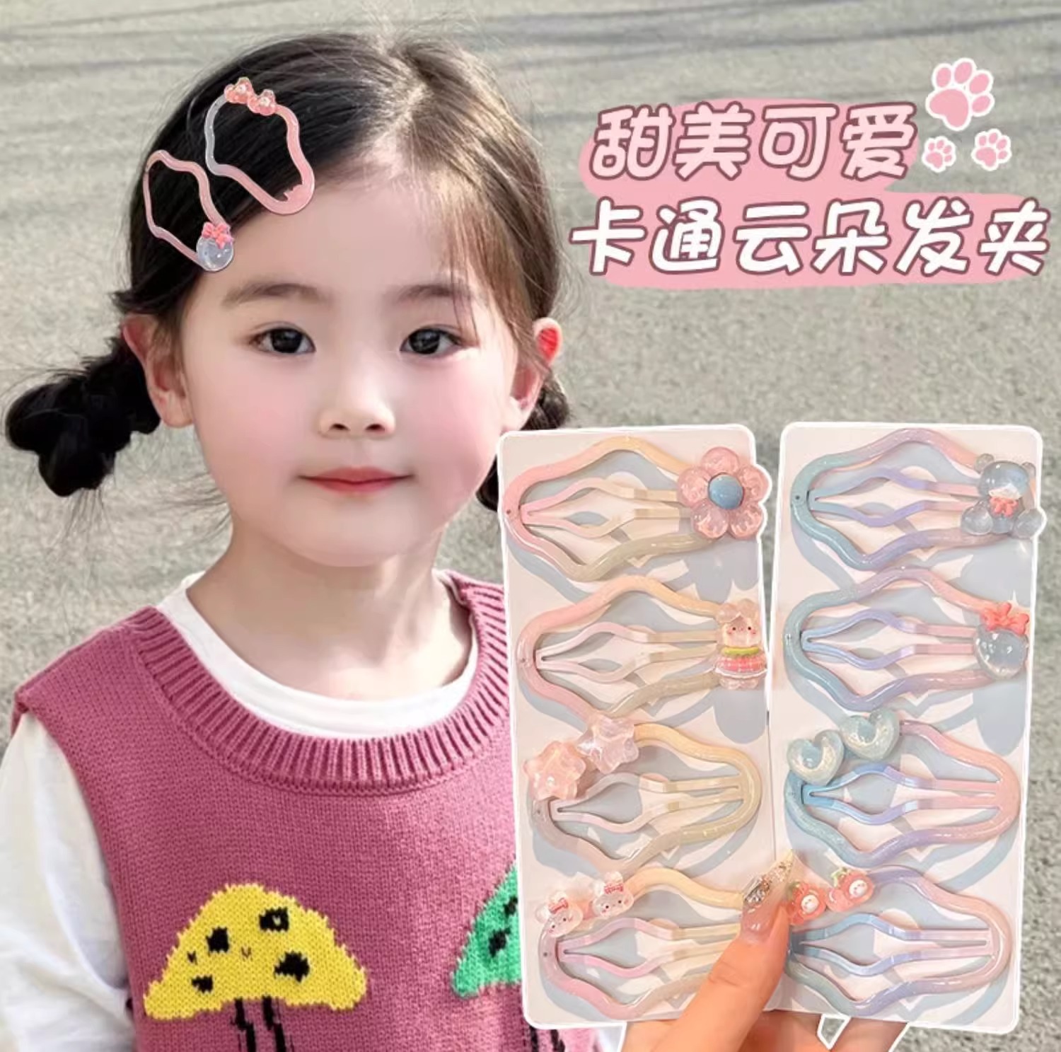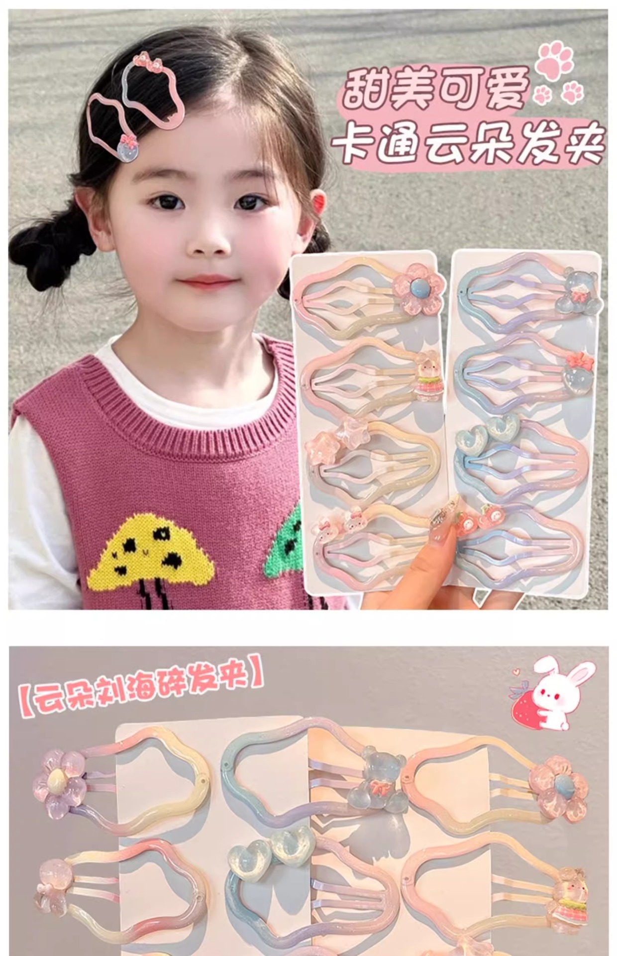 Hermosos clips de cabello nubes gradientes niñas frente cejas rotas clips de cabello BB niñas no lastimar clips de cabello tocado