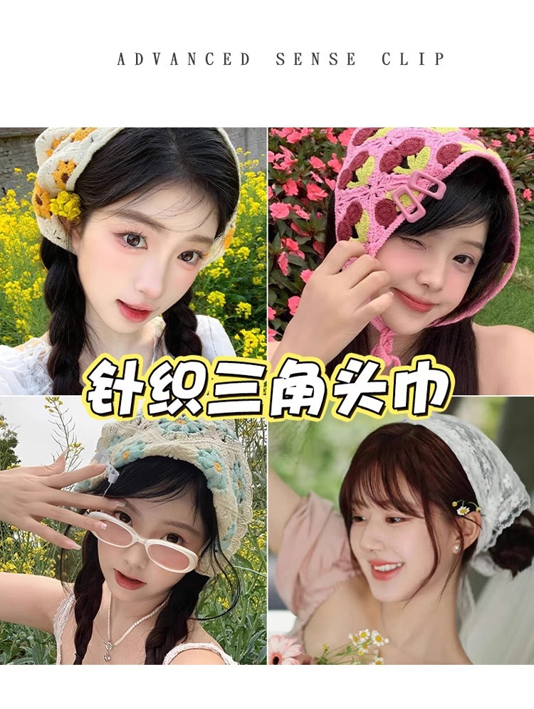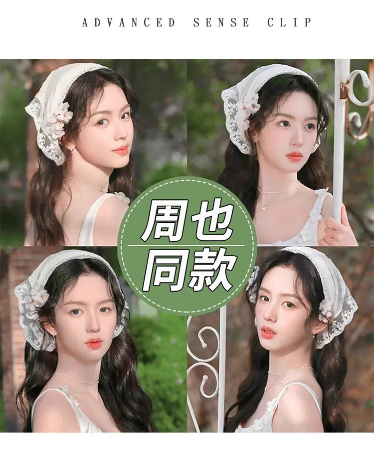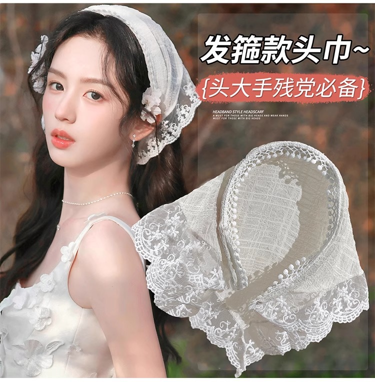 Francés estilo pastoral toallas triangulares de estilo de verano bufandas de seda de moda delgadas tempestad retro bufandas de encaje correa de pelo