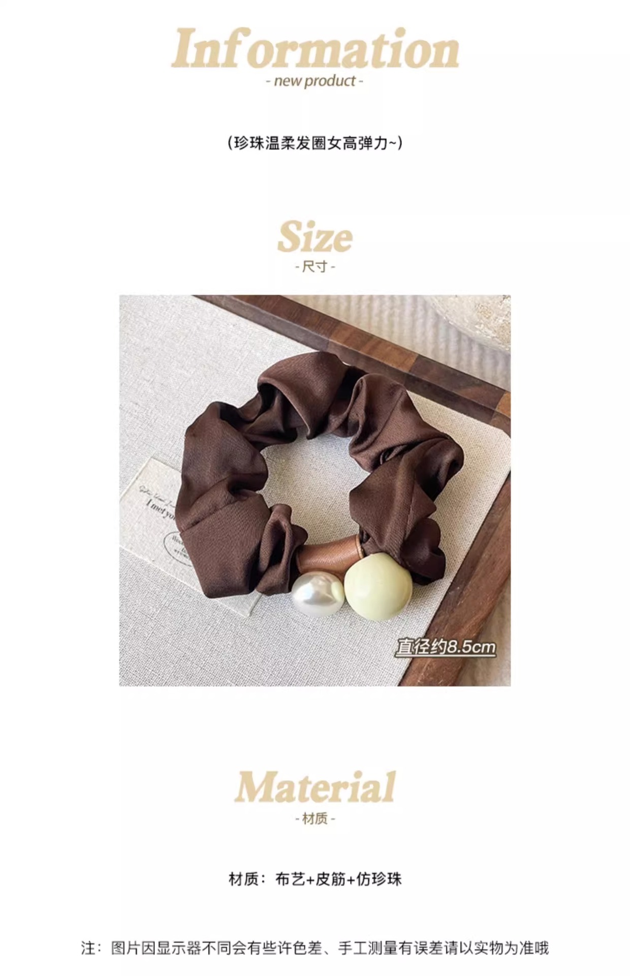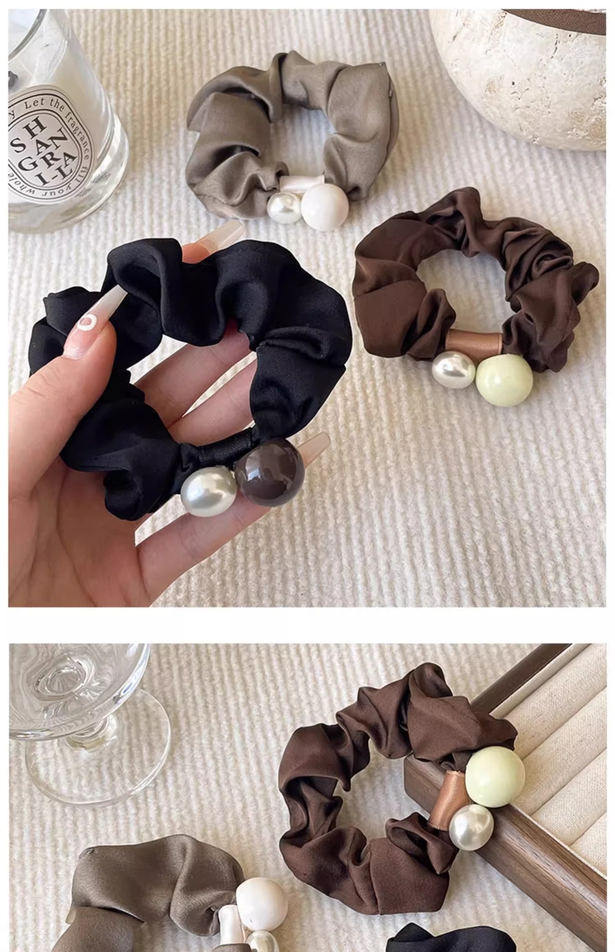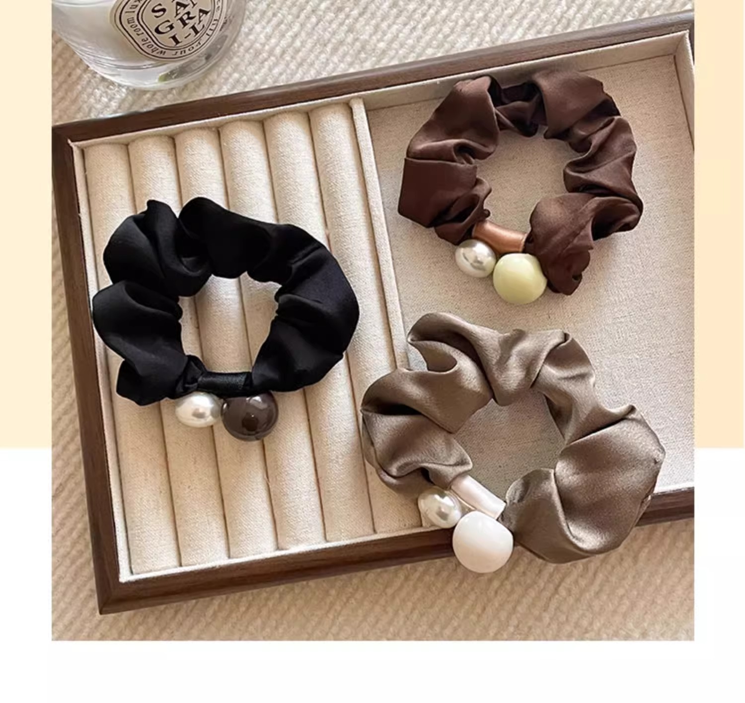 Anillo de cabello de perla francesa de intestino grueso para mujeres de alto nivel de cabello de correa de correa de cabello de alta elasticidad