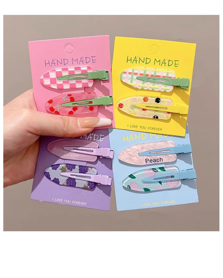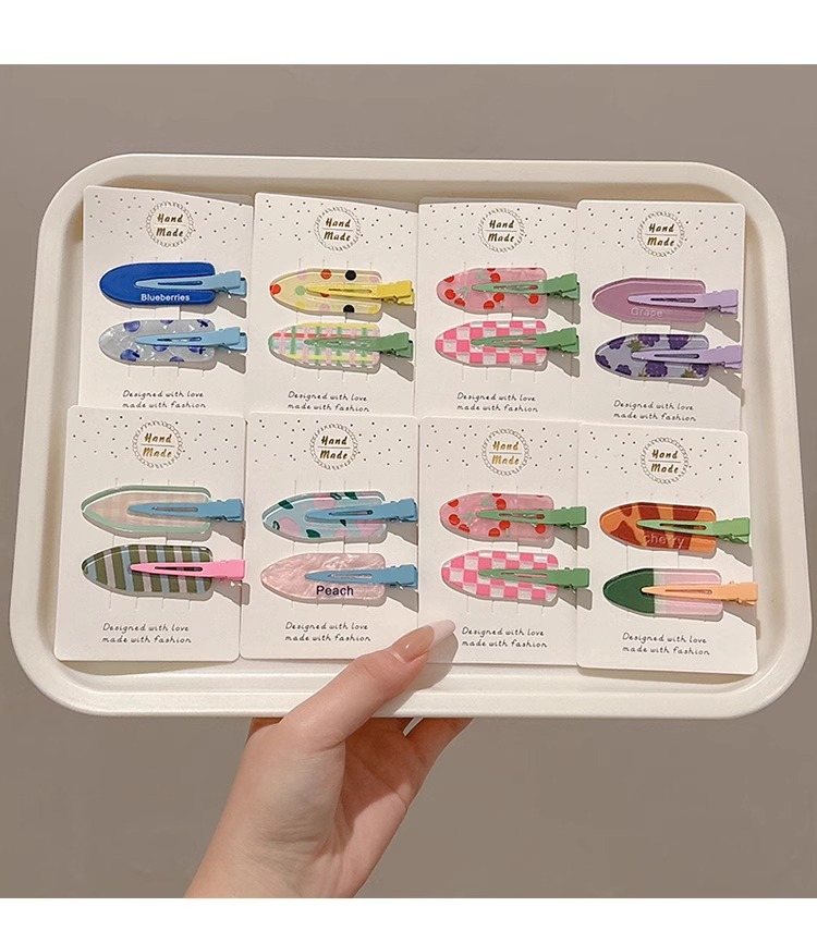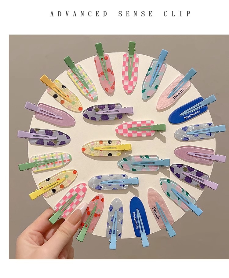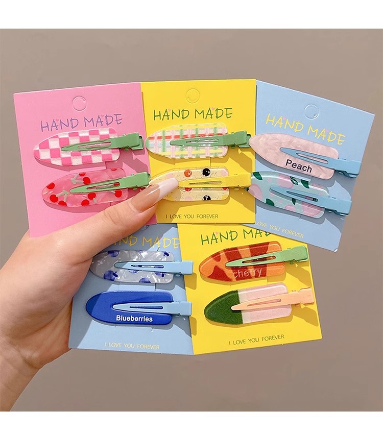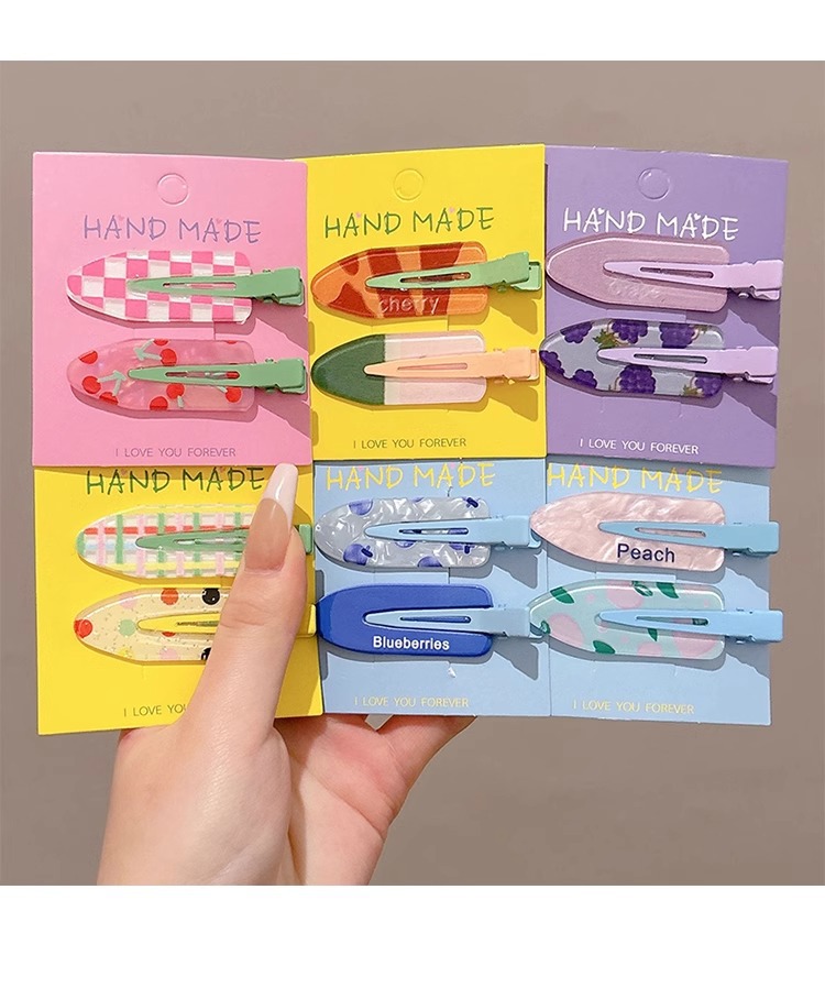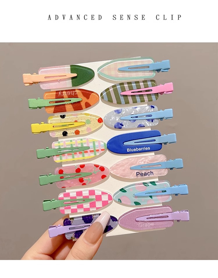 Clip de pelo de verano colorido lindo sin marcas clip de pelo de laterales mujeres frente clip de pelo de boca de pato clip de pelo de niños toque de pelo